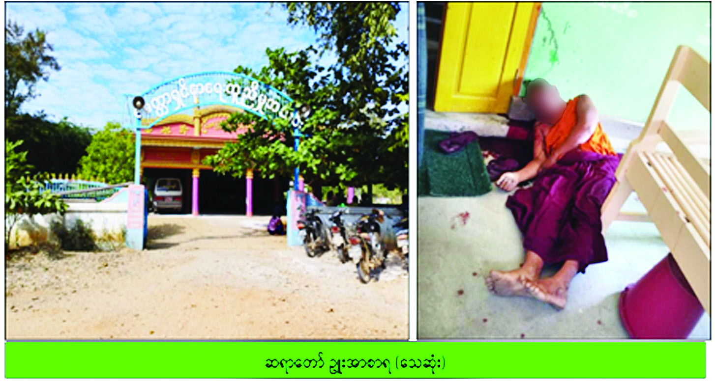 ရေစကြိုမြို့နယ်၌ PDF အမည်ခံ အကြမ်းဖက်သမားများက မန္တလေးတိုင်းဒေသကြီး မြင်းခြံမြို့ရှိ ဇေယျသိမ်ကျောင်းတိုက်မှဆရာတော် ဥူးအာစာရ(၄၂)နှစ်၊ ဝါတော် ၂၃ ဝါ အား သေနတ်ဖြင့် ရက်စက်စွာ ပစ်ခတ်သတ်ဖြတ်