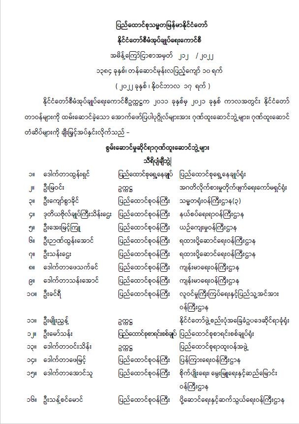 အမျိုးသားလွှတ်တော်ကိုယ်စားလှယ် အစားထိုးဖြည့်စွက်ကြောင်းကြေညာခြင်း