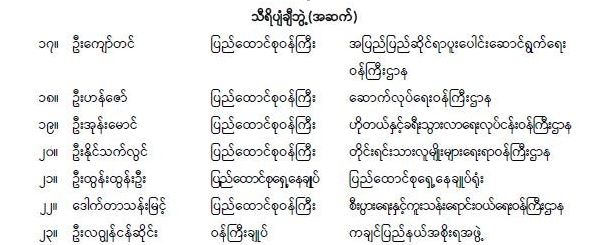 စွမ်းဆောင်မှုဆိုင်ရာဂုဏ်ထူးဆောင်ဘွဲ့များ၊ သီရိပျံချီဘွဲ့ (၂၃)ဦး