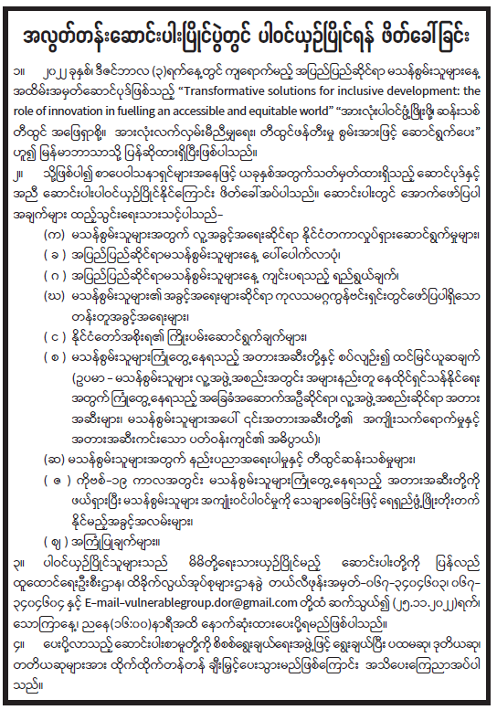 အလွတ်တန်းဆောင်းပါးပြိုင်ပွဲတွင် ပါဝင်ယှဉ်ပြိုင်ရန် ဖိတ်ခေါ်ခြင်း