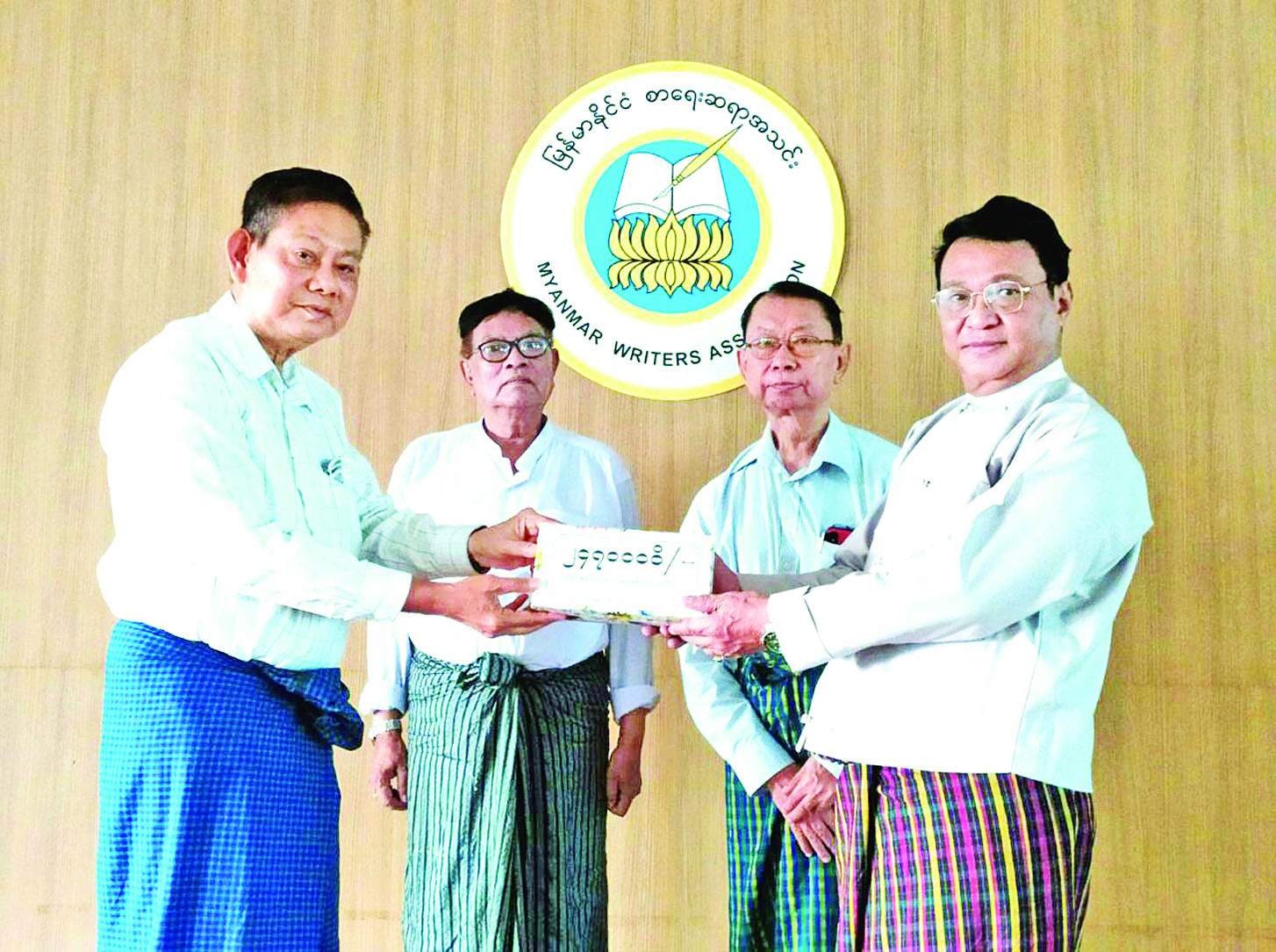 ကျောက်တန်းမြို့နယ် စာရေးဆရာအသင်းက ငွေကျပ်ခြောက်သောင်း၊ ဆရာကြယ်နီလေး (ဥပဒေ)လှိုင် မြို့နယ်၊ မုံရွာမြို့နယ် စာရေးဆရာအသင်းနှင့် တာမွေမြို့နယ်စာရေး ဆရာအသင်းတို့က ငွေကျပ်ငါးသောင်းစီ၊ စာရေးဆရာမ သက်ဦးခင်၊ မဲခေါင်စာပေဆုရ ဦးဖေသန်း(နေမင်းသန်း)၊ မုံရွာမြို့နယ် စာရေးဆရာအသင်း ဥက္ကဋ္ဌဦးညွန့်စိုး (ရွှေရည်စိုး)နှင့် မြန်အောင်မြို့နယ် စာရေးဆရာအသင်းတို့က ငွေကျပ်သုံးသောင်းစီ၊ သန်လျင်မြို့နယ် စာရေးဆရာအသင်းနှင့် လှိုင်သာယာ (အနောက်ပိုင်း)မြို့နယ် စာရေးဆရာအသင်းတို့က ငွေကျပ်နှစ်သောင်းစီ၊ ဒေါ်ယဉ်မြိုင်(မိုးပန်းမွန်-ရာမည) ကို ရည်စူး၍ ဦးထွန်းရီ (ဒေါပုံမြို့နယ်) မိသားစုကငွေကျပ် ခြောက်သိန်းတန်ဖိုးရှိ စာအုပ်များပေးအပ်လှူဒါန်းကြရာ အသင်းဥက္ကဋ္ဌ ဦးအုန်းမောင် (မြင်းမူမောင်နိုင်မိုး)၊ အတွင်းရေးမှူး ဦးညွန့်တင် (မောင်ငြိမ်းသူ- ကြို့ပင်ကောက်)နှင့် တာဝန်ရှိသူများက လက်ခံရယူပြီး ကျေးဇူးတင်စကား ပြန်လည်ပြောကြား သည်။