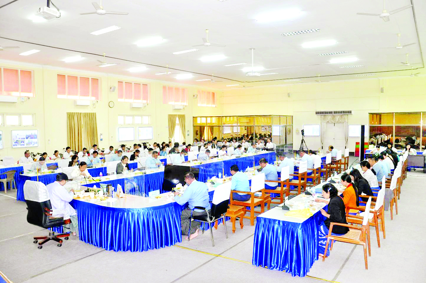စက်မှုဝန်ကြီးဌာန၏ ၂၀၂၂-၂၀၂၃ ဘဏ္ဍာနှစ် အောက်တိုဘာလ၌ လုပ်ငန်းအကောင်အထည်ဖော် ဆောင်ရွက်ခဲ့မှုကို ပြန်လည်သုံးသပ်ခြင်းနှင့် ရှေ့ဆက်လက်ဆောင်ရွက်မည့် အစီအမံများ ချမှတ် သည့် ညှိနှိုင်းအစည်းအဝေးကို ယနေ့နံနက်ပိုင်းက စက်မှုဝန်ကြီးဌာန ရုံးအမှတ်(၃၀) အစည်းအဝေး ခန်းမ၌ ကျင်းပရာ စက်မှုဝန်ကြီးဌာန ပြည်ထောင်စုဝန်ကြီး ဒေါက်တာချာလီသန်း၊ ဒုတိယဝန်ကြီး ဦးရင်မောင်ညွန့်၊ ညွှန်ကြားရေးမှူးချုပ်၊ ဒုတိယညွှန်ကြားရေးမှူးချုပ်များနှင့် တာဝန်ရှိသူများ တက်ရောက်ကြသည်။