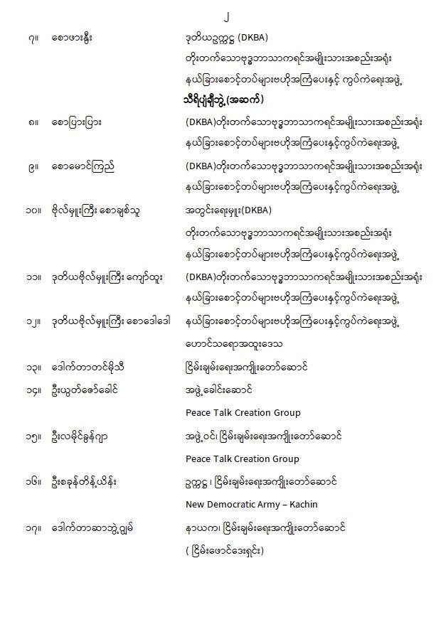 နိုင်ငံတော်နှင့် တပ်မတော်၏ ငြိမ်းချမ်းရေးလုပ်ငန်းစဉ်များကို လက်ခံယုံကြည်သည့် KIA အဖွဲ့နှင့် KPDF အမည်ခံအဖွဲ့ဝင် ၄ ဦး လက်နက်ခဲယမ်းများနှင့်အတူ ဥပဒေဘောင်အတွင်းသို့ ဝင်ရောက်