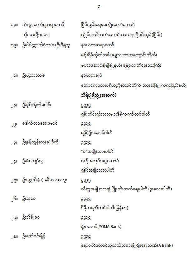 ဝန်ကြီးဌာန ကြေညာချက်များ