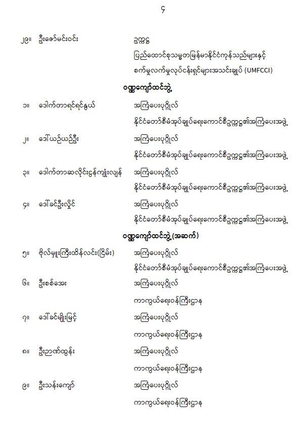 ဦးစီးဌာနနှင့် လုပ်ငန်းများ၏ ကြေညာချက်များ
