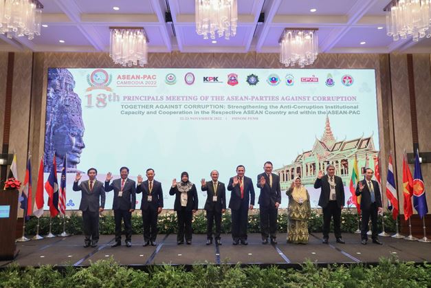 အာဆီယံအဂတိလိုက်စားမှုတိုက်ဖျက်ရေးအဖွဲ့ (ASEAN Parties Against Corruption_ ASEAN-PAC) ၏ (၁၈)ကြိမ်မြောက် အကြီးအမှူးများအစည်းအဝေးကို ယနေ့တွင် ကမ္ဘောဒီးယားနိုင်ငံ ဖနောင်ပင်မြို့ Hyatt Regency Phnom Penh ဟိုတယ်၌ကျင်းပရာ မြန်မာနိုင်ငံအဂတိလိုက်စားမှုတိုက်ဖျက်ရေးကော်မရှင်ဥက္ကဋ္ဌ ဦးသန်းဆွေ ဦးဆောင်သည့် မြန်မာကိုယ်စားလှယ်အဖွဲ့ တက်ရောက်သည်။