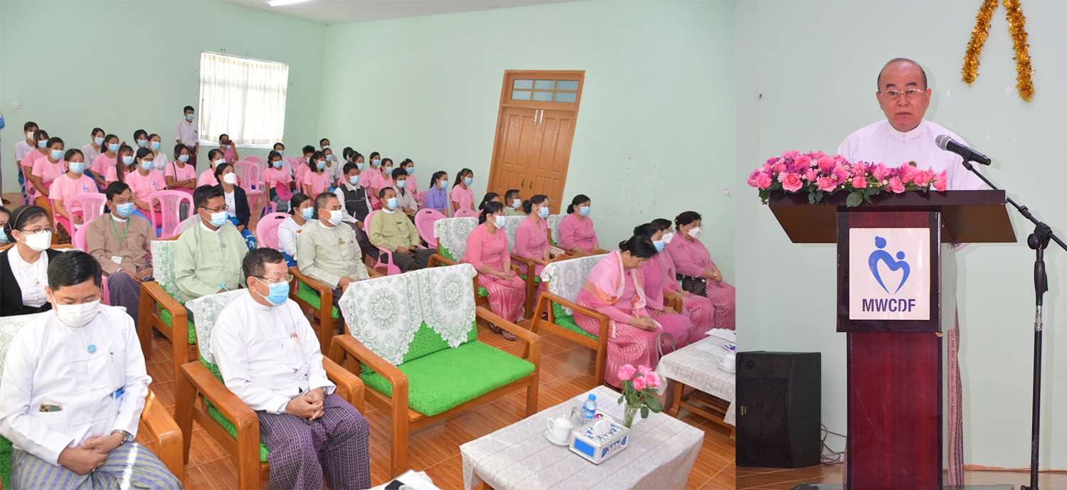 လူမှုဝန်ထမ်းဦးစီးဌာနက Quick Win Project အနေဖြင့် ဆောင်ရွက်လျက်ရှိသည့် ကိုဗစ်-၁၉ ကာလအတွင်း ကျေးလက်နေအမျိုးသမီးများအတွက် အသက်မွေးဝမ်းကျောင်းလုပ်ငန်းများ ပြန်လည်ထူထောင်ရေးစီမံချက် အကောင်အထည်ဖော်ရေးတွင် အသက်မွေးဝမ်းကျောင်းသင်တန်း ပူးပေါင်းပါဝင်ဖွင့်လှစ်သော မြန်မာနိုင်ငံအမျိုးသမီးများနှင့် ကလေးသူငယ်များဘဝ မြှင့်တင်ရေးအသင်း၏ ဝါးလက်မှုသင်တန်းဖွင့်ပွဲအခမ်းအနားကို ဥတ္တရသီရိမြို့နယ်၊ ဇဝန နေ့ကလေးထိန်းကျောင်းခန်းမ၌ ကျင်းပသည်။