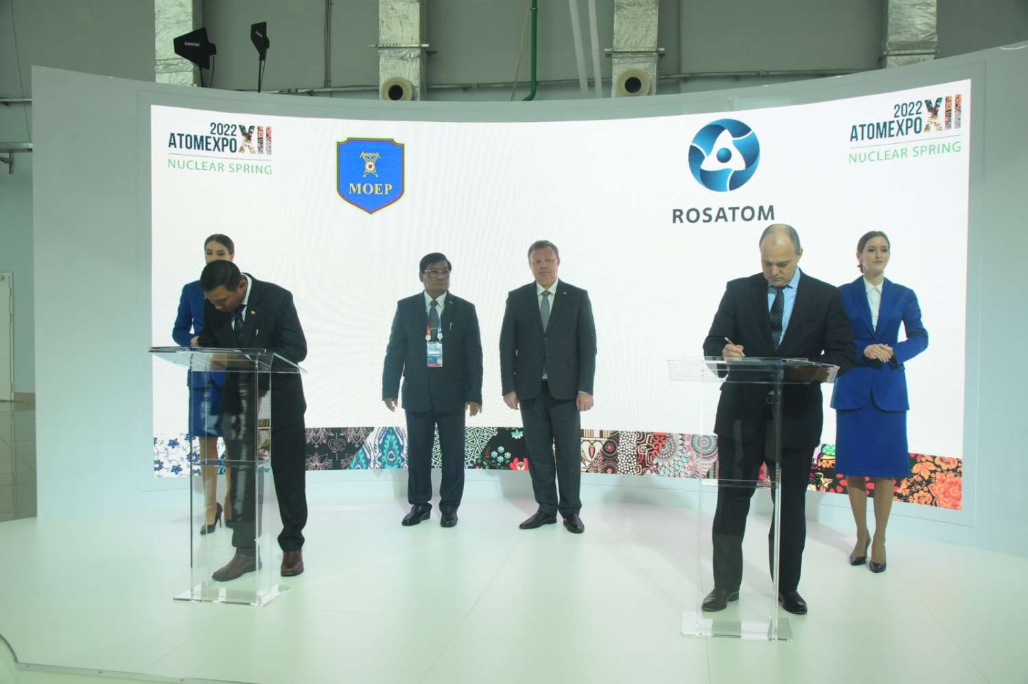 ထို့နောက် နျူကလီးယားစွမ်းအင်အား ငြိမ်းချမ်းသော ရည်ရွယ်ချက်ဖြင့် အသုံးပြု၍ လျှပ်စစ်ဓာတ်အားပေးစက်ရုံတည်ဆောက်ရန် စူစမ်းလေ့လာတိုင်းတာမှုဆိုင်ရာ ကိစ္စရပ်များ ဆောင်ရွက်နိုင်ရေးနှင့် ပတ်သက်၍ ရုရှားဖက်ဒရေးရှင်းနိုင်ငံရှိ Rosatom ကုမ္ပဏီနှင့် ပြည်ထောင်စုသမ္မတ မြန်မာနိုင်ငံတော် လျှပ်စစ်စွမ်းအားဝန်ကြီးဌာနတို့ ပူးပေါင်းဆောင်ရွက်နိုင်ရန် နားလည်မှုစာချွန်လွှာ(Memorandum of Understanding – MOU) ကို လက်မှတ်ရေးထိုးကြသည်။