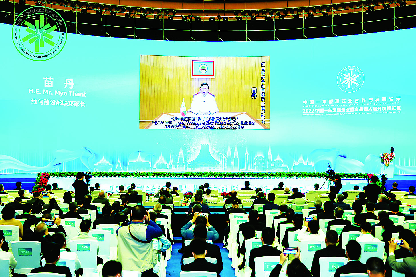 တရုတ် - အာဆီယံ ဆောက်လုပ်ရေးဆိုင်ရာ ပူးပေါင်းဆောင်ရွက်မှုနှင့် ဖွံ့ဖြိုးတိုးတက်မှုဖိုရမ်နှင့် အဆင့်မြင့်အရည်အသွေးရှိ နေထိုင်မှုဝန်းကျင်ပြပွဲ အခမ်းအနားကို နိုဝင်ဘာ ၂၅ ရက်မှ ၂၇ ရက်အထိ တရုတ်ပြည်သူ့သမ္မတနိုင်ငံ ကွမ်ရှီးကျွမ့်ကိုယ်ပိုင် အုပ်ချုပ်ခွင့်ရဒေသ နန်နင်းမြို့၌ ကျင်းပရာ ပြည်ထောင်စုသမ္မတ မြန်မာနိုင်ငံတော်အစိုးရ ဆောက်လုပ်ရေးဝန်ကြီးဌာန ပြည်ထောင်စုဝန်ကြီး ဦးမျိုးသန့်က Video Key Note Speech ဖြင့် အမှာစကား ပြောကြားခဲ့သည်။