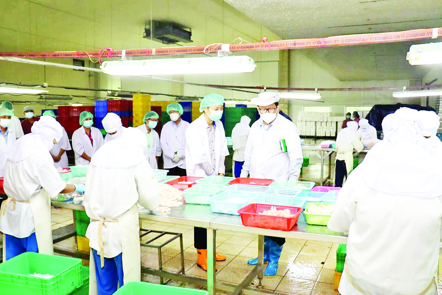 ညနေပိုင်းတွင် ဒုတိယဝန်ကြီးနှင့် ဌာနဆိုင်ရာ တာဝန်ရှိသူများသည် အင်းစိန်မြို့နယ် ကြို့ကုန်း(အနောက်)ရှိ MSL Industries Co.,Ltd. အအေးခန်း စက်ရုံ၏ ငါးနှင့် ပုစွန် အေးခဲလုပ်ငန်း ဆောင်ရွက်နေမှုနှင့် ပြည်ပသို့ကုန်ချောအဖြစ် တင်ပို့နေမှုလုပ်ငန်းများကို ကြည့်ရှုအားပေးကြပြီး ဒုတိယဝန်ကြီးက လိုအပ်သည်များ မှာကြားခဲ့သည်။
