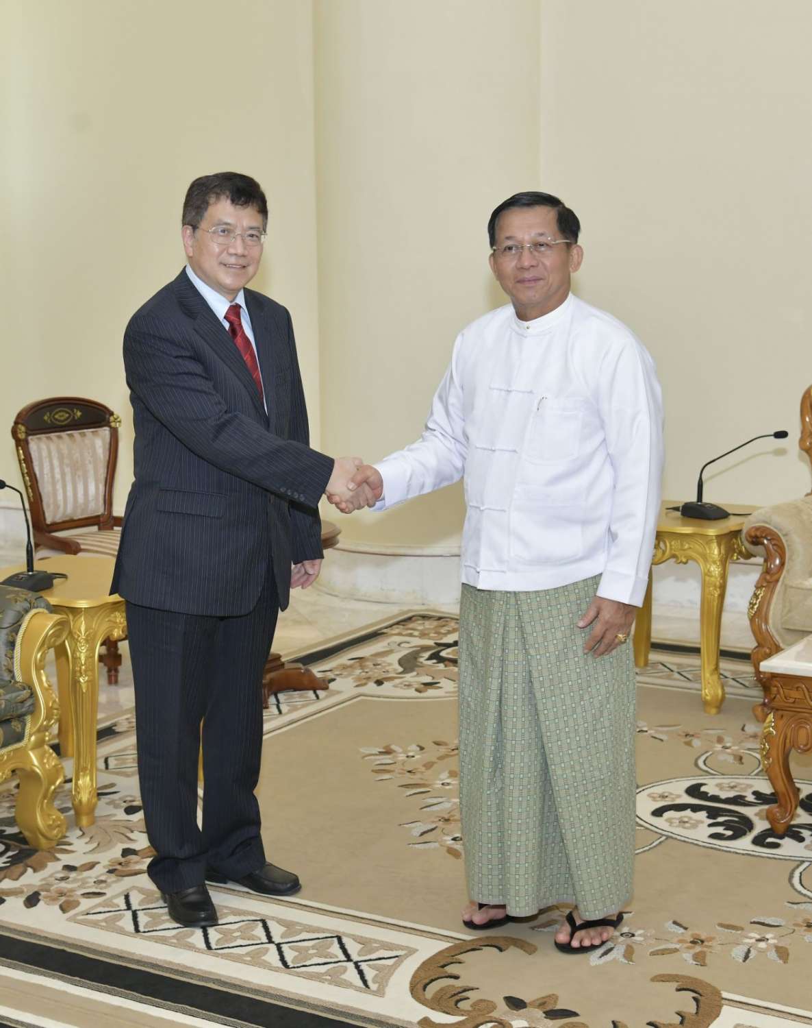 နိုင်ငံတော်စီမံအုပ်ချုပ်ရေးကောင်စီဥက္ကဋ္ဌ နိုင်ငံတော်ဝန်ကြီးချုပ် ဗိုလ်ချုပ်မှူးကြီးမင်းအောင်လှိုင်သည် တရုတ်နိုင်ငံခြားရေးဝန်ကြီးဌာနမှ သံအမတ်ကြီး H.E. Mr. Deng Xijun အား ယနေ့မွန်းလွဲပိုင်းတွင် နေပြည်တော်ရှိ နိုင်ငံတော်စီမံအုပ်ချုပ်ရေးကောင်စီဥက္ကဋ္ဌရုံး၊ ဧည့်ခန်းမ၌ လက်ခံတွေ့ဆုံသည်။