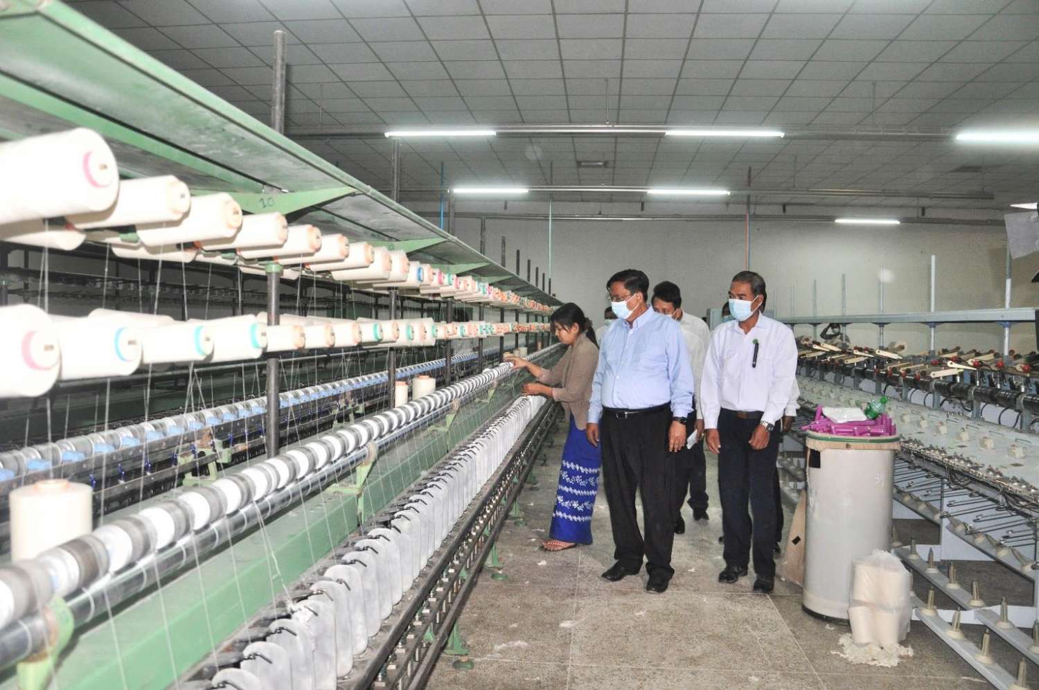 ပြည်တွင်းအထည်အလိပ်လုပ်ငန်းများ ဖွံ့ဖြိုးတိုးတက်စေရန်၊ ပြည်တွင်း၌ ရက်လုပ်သော အဝတ်အထည်များ အရည်အသွေးတိုးတက်စေရန်၊ အထည်အလိပ်လုပ်ငန်းများအတွက် လိုအပ်သော ချည်မျှင်များ ပြည်တွင်း၌ လုံလောက်စွာ ထုတ်လုပ်နိုင်ရန်တို့အတွက် စက်မှုဝန်ကြီးဌာန၊ ပြည်ထောင်စုဝန်ကြီး ဒေါက်တာချာလီသန်းသည် ယမန်နေ့မွန်းလွဲပိုင်းတွင် မန္တလေးတိုင်းဒေသကြီး၊ မြစ်သားမြို့ရှိ အမှတ် (၇) အထည်စက်ရုံ (မြစ်သား) သို့သွားရောက်၍ အဆင့်မြင့်ချည်မျှင်များ ထုတ်လုပ်နေသည့် လုပ်ငန်းစဉ်အဆင့်ဆင့်တို့ကို လှည့်လည်ကြည့်ရှု စစ်ဆေးသည်။