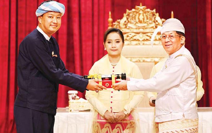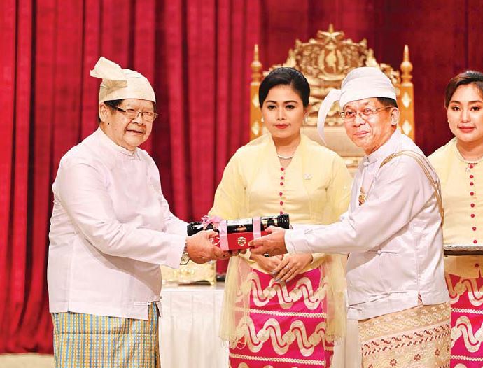 ၂၀၂၃ ခုနှစ် (၇၅)နှစ်မြောက် စိန်ရတုလွတ်လပ်ရေးနေ့အထိမ်းအမှတ် ဂုဏ်ထူးဆောင်ဘွဲ့များ ချီးမြှင့်အပ်နှင်းခြင်းအခမ်းအနား(ဒုတိယနေ့)ကို နိုင်ငံတော်စီမံအုပ်ချုပ်ရေးကောင်စီဥက္ကဋ္ဌရုံး သဘင်ဆောင်၌ ယနေ့နံနက်ပိုင်းနှင့် မွန်းလွဲပိုင်းတွင် အပိုင်းနှစ်ပိုင်းခွဲ၍ကျင်းပရာ နိုင်ငံတော်စီမံအုပ်ချုပ်ရေးကောင်စီဥက္ကဋ္ဌ နိုင်ငံတော်ဝန်ကြီးချုပ် ဗိုလ်ချုပ်မှူးကြီး သတိုးမဟာသရေစည်သူ၊ သတိုးသီရိသုဓမ္မ မင်းအောင်လှိုင် တက်ရောက်အမှာစကားပြောကြားပြီး ဂုဏ်ထူးဆောင်ဘွဲ့များ ချီးမြှင့်အပ်နှင်းသည်။
