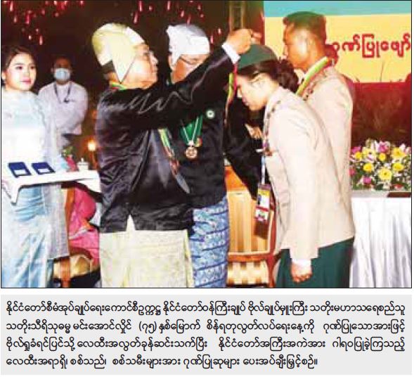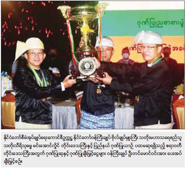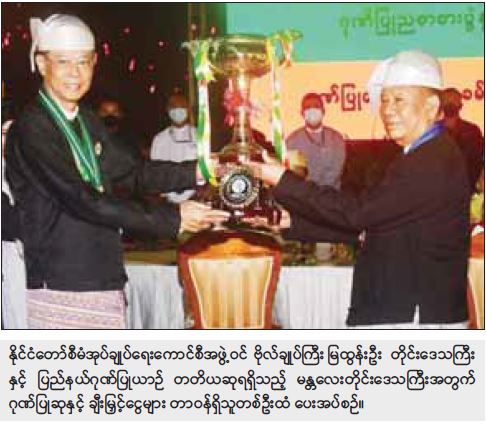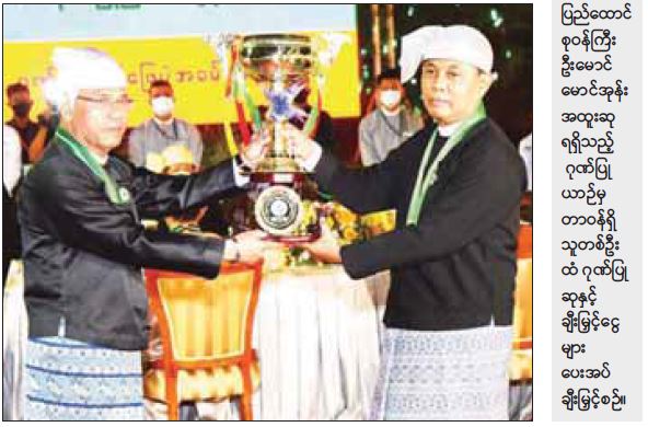 ထို့နောက် ကောင်စီဝင် ဗိုလ်ချုပ်ကြီး မြထွန်းဦးက တိုင်းဒေသကြီးနှင့် ပြည်နယ် ဂုဏ်ပြုယာဉ်        တတိယဆုရရှိသည့် မန္တလေးတိုင်းဒေသကြီးနှင့် ပြည်ထောင်စုဝန်ကြီးဌာန ဂုဏ်ပြုယာဉ်    တတိယဆု  ရရှိသည့် ဆောက်လုပ်ရေးဝန်ကြီးဌာနတို့အတွက် ဂုဏ်ပြုဆုနှင့် ချီးမြှင့်ငွေများကို       တာဝန်ရှိသူများထံ ပေးအပ်ချီးမြှင့်သည်။