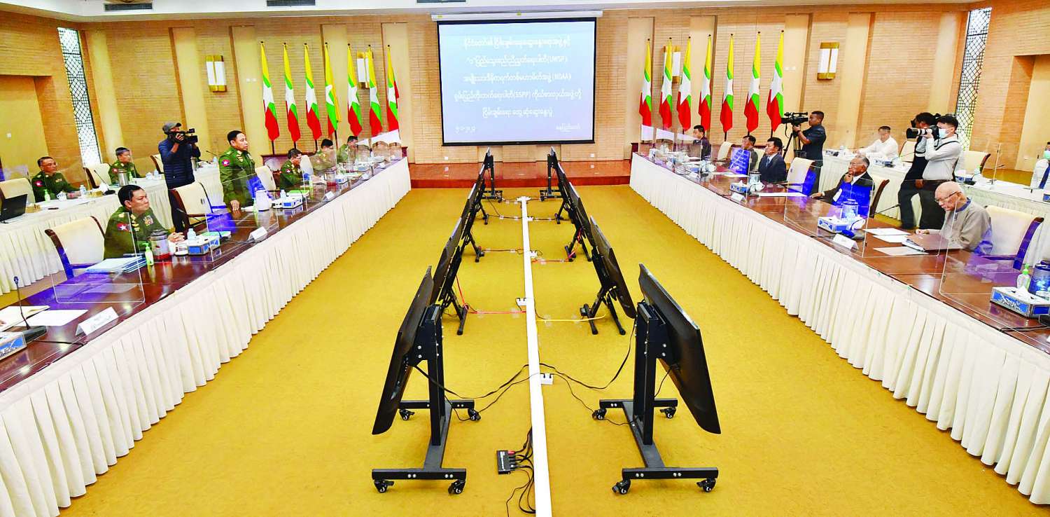 နိုင်ငံတော်၏ငြိမ်းချမ်းရေးဆွေးနွေးရေးအဖွဲ့နှင့် “ဝ” ပြည်သွေးစည်းညီညွတ်ရေးပါတီ (UWSP)၊ အမျိုးသားဒီမိုကရက်တစ်မဟာမိတ်အဖွဲ့(NDAA)နှင့် ရှမ်းပြည်တိုးတက်ရေးပါတီ(SSPP) ကိုယ်စားလှယ်အဖွဲ့တို့ ငြိမ်းချမ်းရေးတွေ့ဆုံဆွေးနွေးပွဲကို ယနေ့နံနက်ပိုင်းတွင် နေပြည်တော်ရှိ အမျိုးသား စည်းလုံးညီညွတ်ရေးနှင့်ငြိမ်းချမ်းရေးဖော်ဆောင်မှုဗဟိုဌာန၌ ကျင်းပသည်။