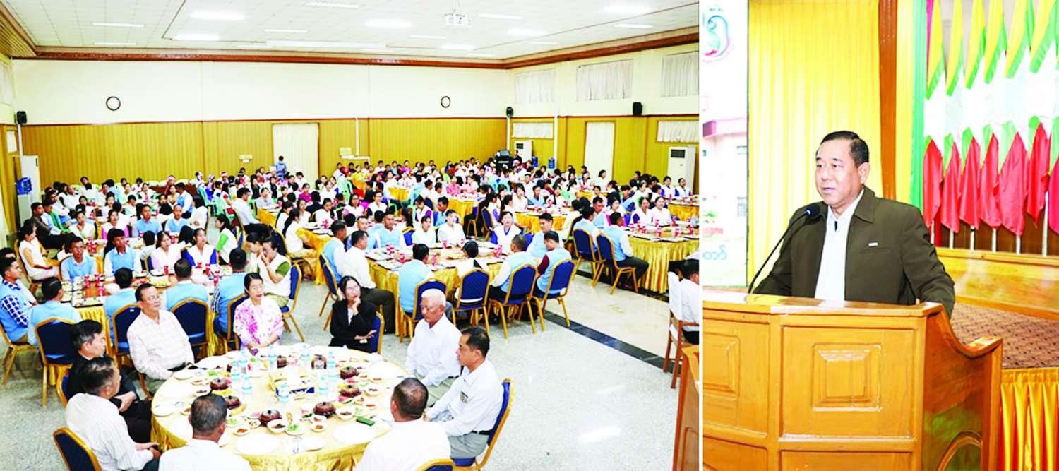 ယင်းနောက် ပြည်ထောင်စုဝန်ကြီးနှင့်အဖွဲ့သည် ဂုဏ်ပြုညစာစားပွဲသို့ တက်ရောက်လာကြသော ဝန်ထမ်းများ၊ ကျောင်းသား ကျောင်းသူများနှင့်အတူ ဂုဏ်ပြုညစာကို အတူတကွသုံးဆောင်ခဲ့ကြကြောင်း သိရသည်။