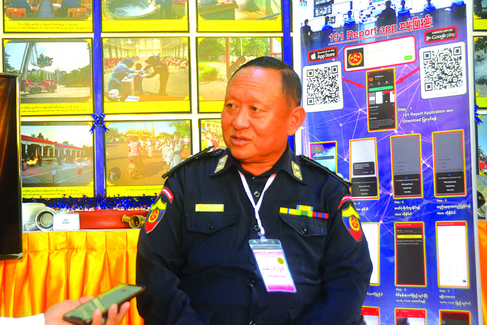 ကျွှန်တော်တို့ ပြည်ထဲရေးဝန်ကြီးဌာနပြခန်းမှာတော့ လက်အောက်ခံဌာနကြီးငါးခုဖြစ်တဲ့ မြန်မာနိုင်ငံရဲတပ်ဖွဲ့၊ အထွေထွေအုပ်ချုပ်ရေးဦးစီးဌာန၊ အထူးစုံစမ်းစစ်ဆေးရေးဦးစီးဌာန၊ အကျဉ်းဦးစီးဌာနနဲ့ မီးသတ်ဦးစီးဌာနတို့ စုပေါင်းပြီးတော့ နိုင်ငံတော်လုံခြုံရေး၊ တရားဥပဒေစိုးမိုးရေး၊ ရပ်ရွာ အေးချမ်းသာယာရေးနဲ့ ပြည်သူ့အကျိုးပြုဆောင်ရွက်ရေးဆိုတဲ့ ဝန်ကြီးဌာနရဲ့ရည်မှန်းချက်တာဝန်တွေကို အကောင်အထည်ဖော် ဆောင်ရွက်နေပါတယ်။ ကျွန်တော်တို့ဌာနကတော့ ပြည်သူ့အကျိုးပြုလုပ်ငန်းတွေကို အဓိကထားပြီးပရဟိတစိတ်ကိုအခြေခံပြီး ဆောင်ရွက်ရတဲ့ဌာနဖြစ်တဲ့အတွက် ပြည်သူလူထုနဲ့အနီးဆုံးမှာလည်းရှိတယ်။ ပြည်သူလူထုတွေမှာကြုံတွေ့ရတဲ့ ဘေးအန္တရာယ်တွေကို ကူညီဆောင်ရွက်ပေးခဲ့မှာဆိုရင် ၇၆ နှစ်ရှိခဲ့ပါပြီ။ အခုလိုမျိုး ပြည်သူလူထုအကျိုးအတွက် ဆောင်ရွက်နေတာတွေကို (၇၅) နှစ်မြောက် စိန်ရတုလွတ်လပ်ရေးနေ့ အခါသမယမှာ ဝန်ကြီးဌာနကိုယ်စားပြု ပြသတာဖြစ်ပါတယ်။ မီးသတ်ဦးစီးဌာနပြခန်းမှာတော့ မီးဘေးလုံခြုံရေး၊ ရှာဖွေကယ်ဆယ်ရေး ဆောင်ရွက်ခဲ့မှု၊ လေ့ကျင့်ခဲ့မှု ဓာတ်ပုံမှတ်တမ်းတွေ၊ မီးသတ်တပ်ဖွဲ့ဥပဒေ၊ နည်းဥပဒေတွေ၊ မီးဘေးလုံခြုံရေးနဲ့ဆိုင်တဲ့ မီးသတ်တပ်ဖွဲ့သုံး ခေတ်မီအသုံးအဆောင်တွေ၊ ဝတ်စုံတွေကိုခင်းကျင်းပြသထားပါတယ်။ တစ်ဖက်မှာလည်း ပြည်သူ့ရေးရာဝန်ဆောင်မှု လုပ်ငန်းတွေကို နည်းပညာခေတ်နဲ့အညီ နိုင်ငံတကာမီးသတ်တပ်ဖွဲ့တွေက ဆောင်ရွက်နေသလိုပဲ ကျွှန်တော်တို့မီးသတ်တပ်ဖွဲ့ရဲ့ 191 Report လို့ခေါ်တဲ့ အက်ပလီကေးရှင်းတစ်ခုကို ဖန်တီးပြီးဒီပြပွဲမှာ စတင်ပြီးတော့ မိတ်ဆက်လိုက်ပြီဖြစ်ပါတယ်။ ဒီအက်ပလီကေးရှင်းရဲ့ ရည်ရွယ်ချက်ကတော့ လူတိုင်းရဲ့လက်ထဲမှာ ရောက်ရှိနေပြီးတော့တစ်ခုခုအရေးပေါ် အကူအညီလိုအပ်တယ်ဆိုရင် မီးသတ်တပ်ဖွဲ့ကိုအရင်ဆုံး သတိရပြီး မီးသတ်တပ်ဖွဲ့ရဲ့ Command and Control Centre ဆီကို ဆက်သွယ်နိုင်အောင် ဆောင်ရွက်ပေးထားတာဖြစ်ပါတယ်။ ကျွန်တော်တို့ရဲ့ Control စင်တာကနေတစ်ဆင့် အနီးစပ်ဆုံး မီးသတ်တပ်ဖွဲ့စခန်းတွေဆီကို ဆက်သွယ်ပြီးလိုအပ်တဲ့ အကူအညီတွေပေး နိုင်အောင် ဆောင်ရွက်တာဖြစ်ပါတယ်။