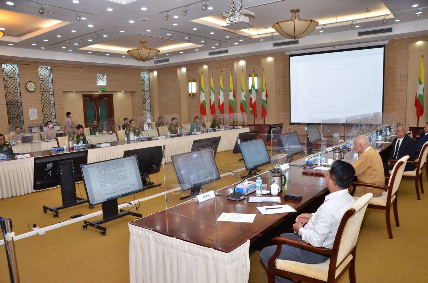 တွေ့ဆုံဆွေးနွေးပွဲသို့ နိုင်ငံတော်စီမံအုပ်ချုပ်ရေးကောင်စီအဖွဲ့ဝင်၊ ပြည်ထောင်စုအစိုးရအဖွဲ့ရုံးဝန်ကြီးဌာန ပြည်ထောင်စုဝန်ကြီး၊ အမျိုးသားစည်းလုံးညီညွတ်ရေးနှင့် ငြိမ်းချမ်းရေးဖော်ဆောင်မှုညှိနှိုင်းရေးကော်မတီဥက္ကဋ္ဌ၊ နိုင်ငံတော်၏ငြိမ်းချမ်းရေးဆွေးနွေးရေးအဖွဲ့ ခေါင်းဆောင် ဒုတိယဗိုလ်ချုပ်ကြီး ရာပြည့်၊ အဖွဲ့ဝင်များဖြစ်ကြသည့် နိုင်ငံတော်စီမံအုပ်ချုပ်ရေးကောင်စီအဖွဲ့ဝင် ဒုတိယဗိုလ်ချုပ်ကြီး မိုးမြင့်ထွန်း၊ အမျိုးသားစည်းလုံး ညီညွတ်ရေးနှင့် ငြိမ်းချမ်းရေး ဖော်ဆောင်မှုညှိနှိုင်းရေးကော်မတီ အတွင်းရေးမှူး ဒုတိယဗိုလ်ချုပ်ကြီး မင်းနောင်၊ ညှိနှိုင်းရေးကော်မတီအဖွဲ့ဝင်များဖြစ်ကြသည့် ဒုတိယဗိုလ်ချုပ်ကြီးမင်းနိုင်၊ ဒုတိယဗိုလ်ချုပ်ကြီး ဝင်းဗိုလ်ရှိန်နှင့် ဒုတိယဗိုလ်ချုပ်ကြီး အေးဝင်း၊ “၀” ပြည်သွေးစည်းညီညွတ်ရေးပါတီ (UWSP)မှ ဒုတိယဥက္ကဋ္ဌဦးလော့ယာကု၊ အမျိုးသားဒီမိုကရက်တစ်မဟာမိတ်အဖွဲ့ (NDAA) မှ ဒုတိယဥက္ကဋ္ဌ ဦးစန်ပေ့၊ ရှမ်းပြည်တိုးတက်ရေးပါတီ (SSPP) မှ ဒုတိယဥက္ကဋ္ဌ (၂) စဝ်ခွန်ဆိုင်နှင့် ငြိမ်းချမ်းရေးဆွေးနွေးရေး ကိုယ်စားလှယ်များ တက်ရောက်ကြသည်။