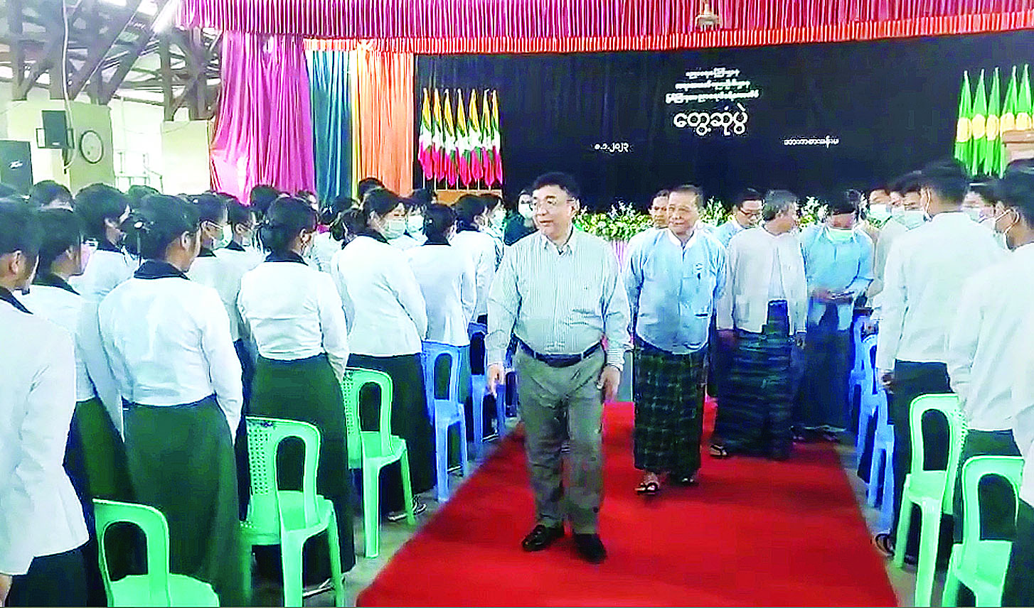 တွေ့ဆုံစဉ် ပြည်ထောင်စုဝန်ကြီးက ပညာရေးဒီဂရီကောလိပ်တွင် တက်ရောက်ပညာသင်ယူနေကြသည့် အနာဂတ်နိုင်ငံတော်အတွက်အားထားရမည့် ဆရာ၊ ဆရာမ လျောင်းလျာ သင်တန်းသား ၊ သင်တန်းသူများကို ယခုလိုတွေ့ဆုံရသည့်အတွက် ဂုဏ်ယူ ဝမ်းမြောက်ပါကြောင်း၊ အခြေခံပညာရေးကဏ္ဍသည် နိုင်ငံတော်ဖွံ့ဖြိုးတိုးတက်ရေးအတွက် အရေးအကြီးဆုံးအခြေခံအုတ်မြစ်ဖြစ်ပါကြောင်း၊ ယခုကတည်းက မိမိတို့ကိုယ်တိုင် ထူးချွန်သော၊ အသင်အပြကောင်းမွန်သော ဆရာ၊ ဆရာမများဖြစ်လာအောင် ရည်မှန်းကြိုးစားကြစေလိုပါကြောင်း၊ မိမိတို့တာဝန်ထမ်းဆောင်ရသည့်အခါ သင်ကြားပို့ချရမည့် ဘာသာရပ်များကို ကျွမ်းကျင်ပိုင်နိုင်စွာ ပြန်လည်သင်ကြားပို့ချနိုင်ရေး ကြိုးစားသင်ယူကြစေလိုပါကြောင်း၊ တာဝန်ထမ်းဆောင်သည့်အခါ ကျောင်းသား၊ ကျောင်းသူများကို ဆင်းရဲခြင်း၊ ချမ်းသာခြင်း စသည့် မည်သည့်ခွဲခြားမှုမျိုးမှမရှိစေဘဲ အမှန်တကယ်ပညာတတ်အောင် ပြုစုပျိုးထောင်သင်ကြားပေးကြရမည်ဖြစ်ပါကြောင်း၊ လုပ်ဖော်ကိုင်ဖက်ပညာရေးမိသားစုအချင်းချင်း မေတ္တာထား၍ ကိုယ်ချင်းစာတရားများဖြင့် အပြန်အလှန်လေးစားစွာ ဆက်ဆံဆောင်ရွက်ကြစေလိုပါကြောင်း၊ စေတနာဖြူစင်ပြီး ရိုးသားကြိုးစားသည့်နှလုံးလှသော ဆရာ၊ ဆရာမများဖြစ်အောင်ကြိုးစားကြစေလိုပါကြောင်း၊ နိုင်ငံအတွက်အားထားရမည့် ထူးချွန်ထက်မြက်သော နိုင်ငံသားကောင်းသမီးမွန်များကို ပြုစုပျိုးထောင်မွေးထုတ်ပေးစေလိုပါကြောင်း တိုက်တွန်းပြောကြားသည်။