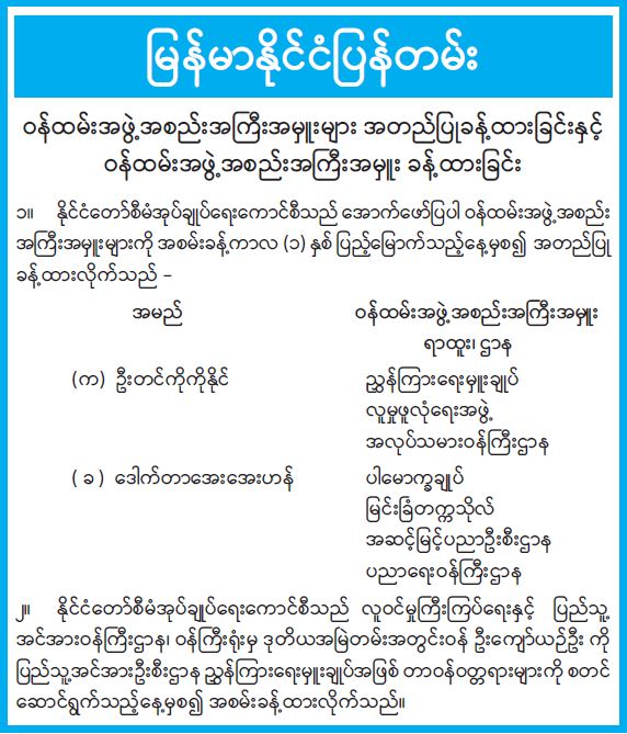 ဝန်ကြီးဌာန ကြေညာချက်များ