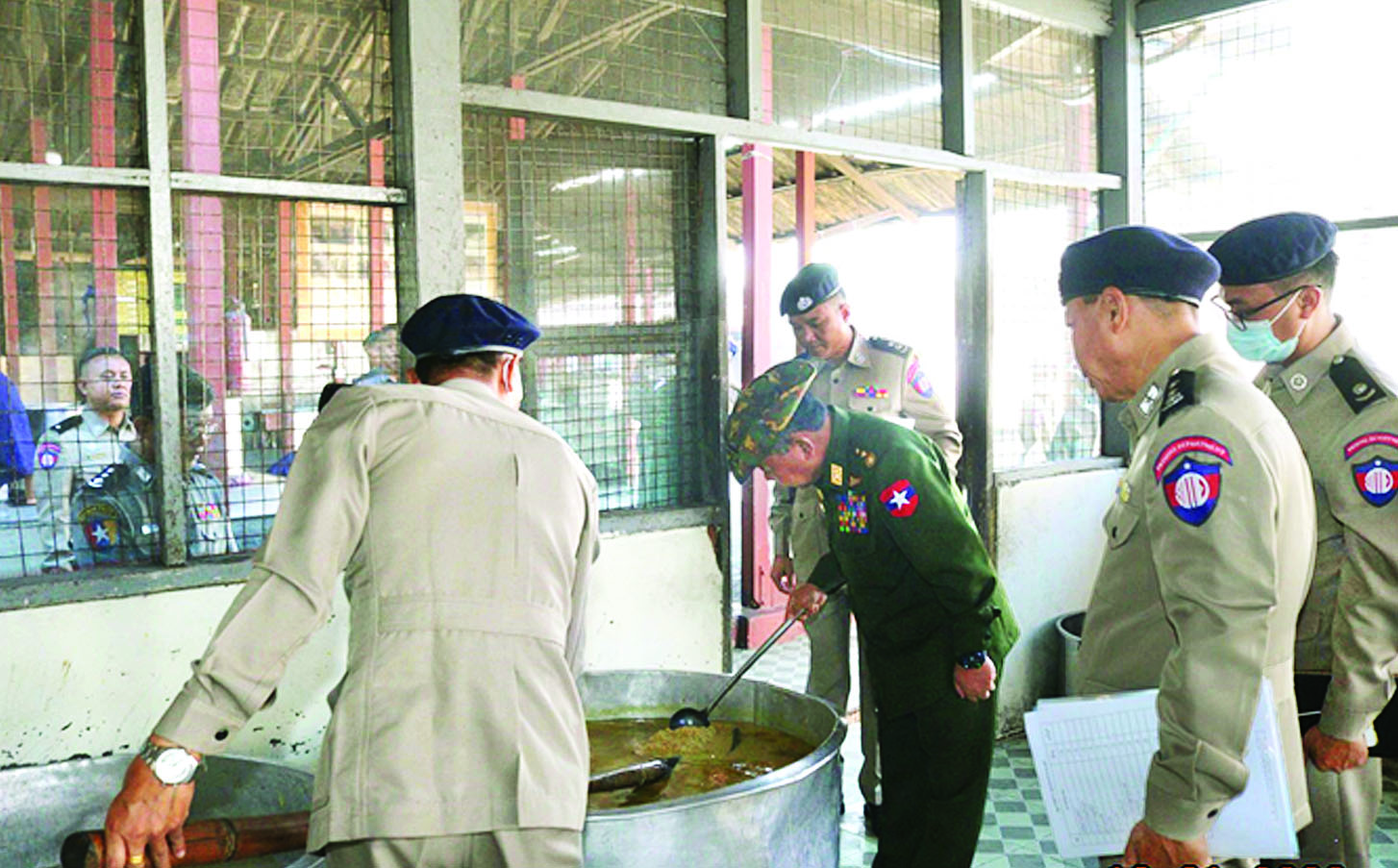 မွန်းလွဲပိုင်းတွင် ပြည်ထောင်စုဝန်ကြီးနှင့်အဖွဲ့သည် ပဲခူးတိုင်းဒေသကြီး တောင်ငူမြို့နယ်ရှိ တောင်ငူအကျဉ်းထောင်သို့ရောက်ရှိကာ အကျဉ်းထောင်ရှိ စားဖိုကြီးအသစ်ဆောက်လုပ်သည့်နေရာ၊ အကျဉ်းသား/ အချုပ်သားအိပ်ဆောင်များ၊ ရေချိုးကန်များနှင့် ဆေးရုံဆောင်တို့ကို လှည့်လည်ကြည့်ရှုစစ်ဆေးပြီး အကျဉ်းထောင်လုံခြုံရေးနှင့် ပတ်သက်၍ အထူးဂရုပြုဆောင်ရွက်ရန်၊ အကျဉ်းထောင်ဆူပူမှုများဖြစ်ပွာလာပါက အချိန်တိုအတွင်းထိန်းသိမ်းဆောင်ရွက်နိုင်ရေးအတွက် ဇာတ်တိုက်လေ့ကျင့်မှုများကို စနစ်တကျလေ့ကျင့်ဆောင်ရွက်ထားရန်၊ အကျဉ်းသား/ အချုပ်သားများအား ချက်ပြုတ် ကျွေးမွေးရာတွင် စေတနာထား၍ဆောင်ရွက်ပေးရန်၊ ကျန်းမာရေးမကောင်းသည့် အကျဉ်းသား/ အချုပ်သားများအား စေတနာထား၍ ဂရုတစိုက်ပြုစုကုသပေးရန်နှင့် HIV/AIDS ရောဂါရှိသူ အကျဉ်းသား/ အချုပ်သားများ ပြစ်ဒဏ်စေ့၍လွတ်မြောက်ပါက ဆေးဝါး ဆက်လက်သောက်သုံးနိုင်ရေးအတွက် အကျဉ်းထောင်ဆရာဝန်က သေချာစွာလမ်းညွှန် ပေးရန်တို့နှင့်ပတ်သက်၍ အကျဉ်းထောင်တာဝန်ရှိသူများကို မှာကြားခဲ့ကြောင်း သိရသည်။