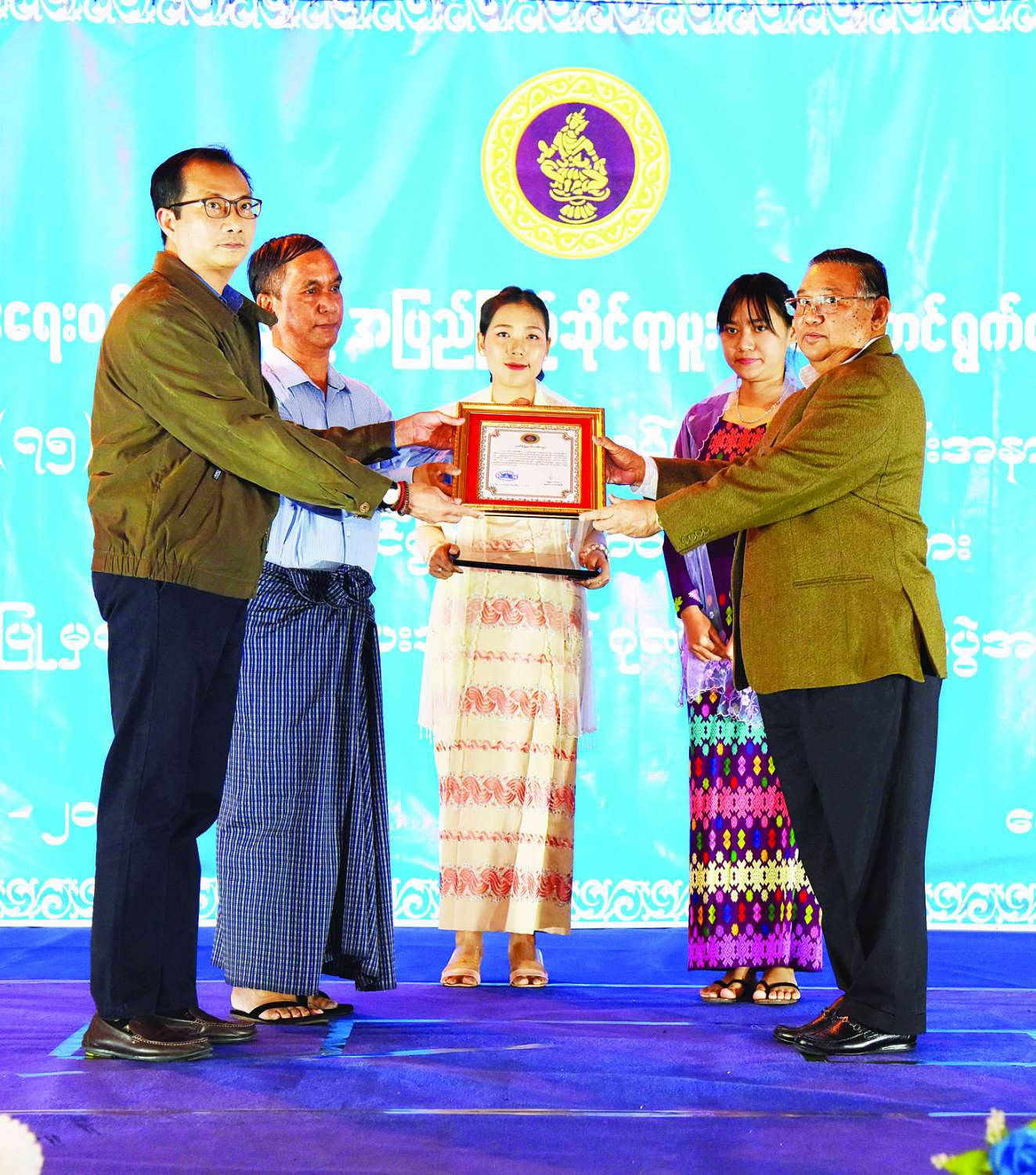 စိန်ရတုလွတ်လပ်ရေးနေ့ ဂုဏ်ပြုအခမ်းအနားတွင် ပါဝင်ဆောင်ရွက်ခဲ့ကြသည့် နိုင်ငံခြားရေး ဝန်ကြီးဌာနနှင့် အပြည်ပြည်ဆိုင်ရာပူးပေါင်းဆောင်ရွက်ရေးဝန်ကြီးဌာနတို့မှ ဝန်ထမ်းများအား ဂုဏ်ပြုပွဲအခမ်းအနားကျင်းပ