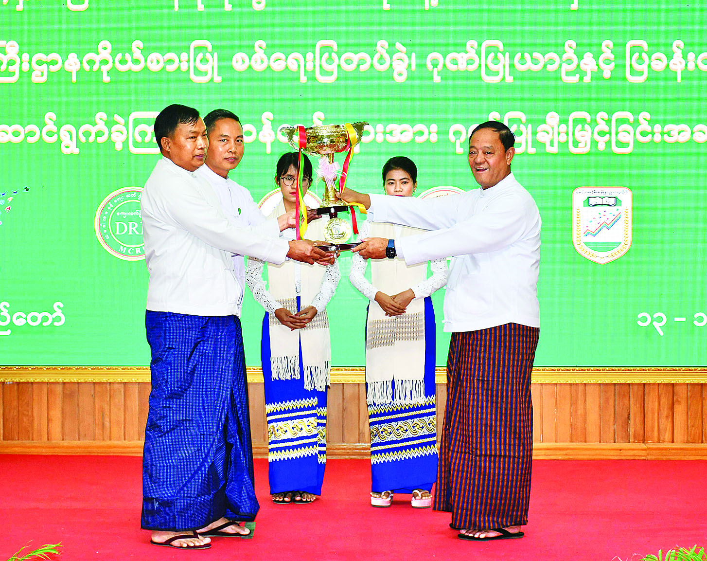 (၇၅) နှစ်မြောက် စိန်ရတုလွတ်လပ်ရေးနေ့ ဂုဏ်ပြုအခမ်းအနားတွင် သမဝါယမနှင့် ကျေးလက်ဖွံ့ဖြိုးရေးဝန်ကြီးဌာနကိုယ်စားပြု စစ်ရေးပြတပ်ခွဲ၊ ဂုဏ်ပြုယာဉ်နှင့်ပြခန်းတို့၌ ပါဝင်ဆောင်ရွက်ခဲ့ကြသောဝန်ထမ်းများ ဂုဏ်ပြုချီးမြှင့်ခြင်း အခမ်းအနားကို ယနေ့နံနက်ပိုင်းက အဆိုပါရုံး အစည်းအဝေးခန်းမ၌ကျင်းပရာ စိုက်ပျိုးရေး၊ မွေးမြူရေးနှင့် ဆည်မြောင်းဝန်ကြီးဌာနနှင့် သမဝါယမနှင့် ကျေးလက်ဖွံ့ဖြိုးရေးဝန်ကြီးဌာန ပြည်ထောင်စု ဝန်ကြီး ဦးလှမိုး၊ ဒုတိယဝန်ကြီး ဦးမြင့်စိုး၊ အမြဲတမ်းအတွင်းဝန်၊ ညွှန်ကြားရေးမှူးချုပ်များ၊ (၇၅) နှစ်မြောက် စိန်ရတုလွတ်လပ်ရေးနေ့ အခမ်းအနားတွင် ပါဝင်ခဲ့ကြသည့် ဝန်ထမ်းများနှင့် တာဝန်ရှိသူများ တက်ရောက်ကြသည်။