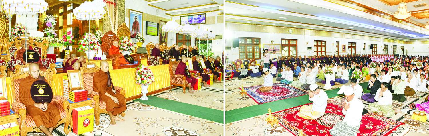 ယင်းနောက် ဇေတဝန်ဓမ္မာရုံ ဆရာတော် ဒေါက်တာအရှင်သောပါကက စာအောင်သံဃာတော်အရေအတွက်ကို ဖတ်ကြားလျှောက်ထားပြီး ပြည်ထောင်စုဝန်ကြီး၊ ရန်ကုန်တိုင်းဒေသကြီးဝန်ကြီးချုပ်၊ ရန်ကုန်တိုင်းစစ်ဌာနချုပ်တိုင်းမှူးနှင့် အလှူရှင်များက ၂၀၂၂ ခုနှစ်တွင် တစ်နိုင်ငံလုံးအတိုင်းအတာဖြင့်ကျင်းပခဲ့သည့် မဇ္စျိမာလင်္ကာရသာမဏေကျော် စာမေးပွဲကြီး၌တတိယအဆင့်ကို အောင်မြင်တော်မူသည့် “မဇ္စျိမာ လင်္ကာရ သာမဏေကျော်ဘွဲ့ရ” သာသနာ့အာဇာနည် အရှင်မြတ်များနှင့် ပထမအဆင့်၊ ဒုတိယအဆင့်၊ တတိယအဆင့်သုံးဆင့်လုံးတွင် ဂုဏ်ထူးဖြင့်အောင်မြင်တော်မူခဲ့ကြသည့် သာသနာ့အာဇာနည်အရှင်မြတ် ကိုးပါးတို့အား ဘွဲ့တံဆိပ်တော်များဆက်ကပ်လှူဒါန်းကြသည်။