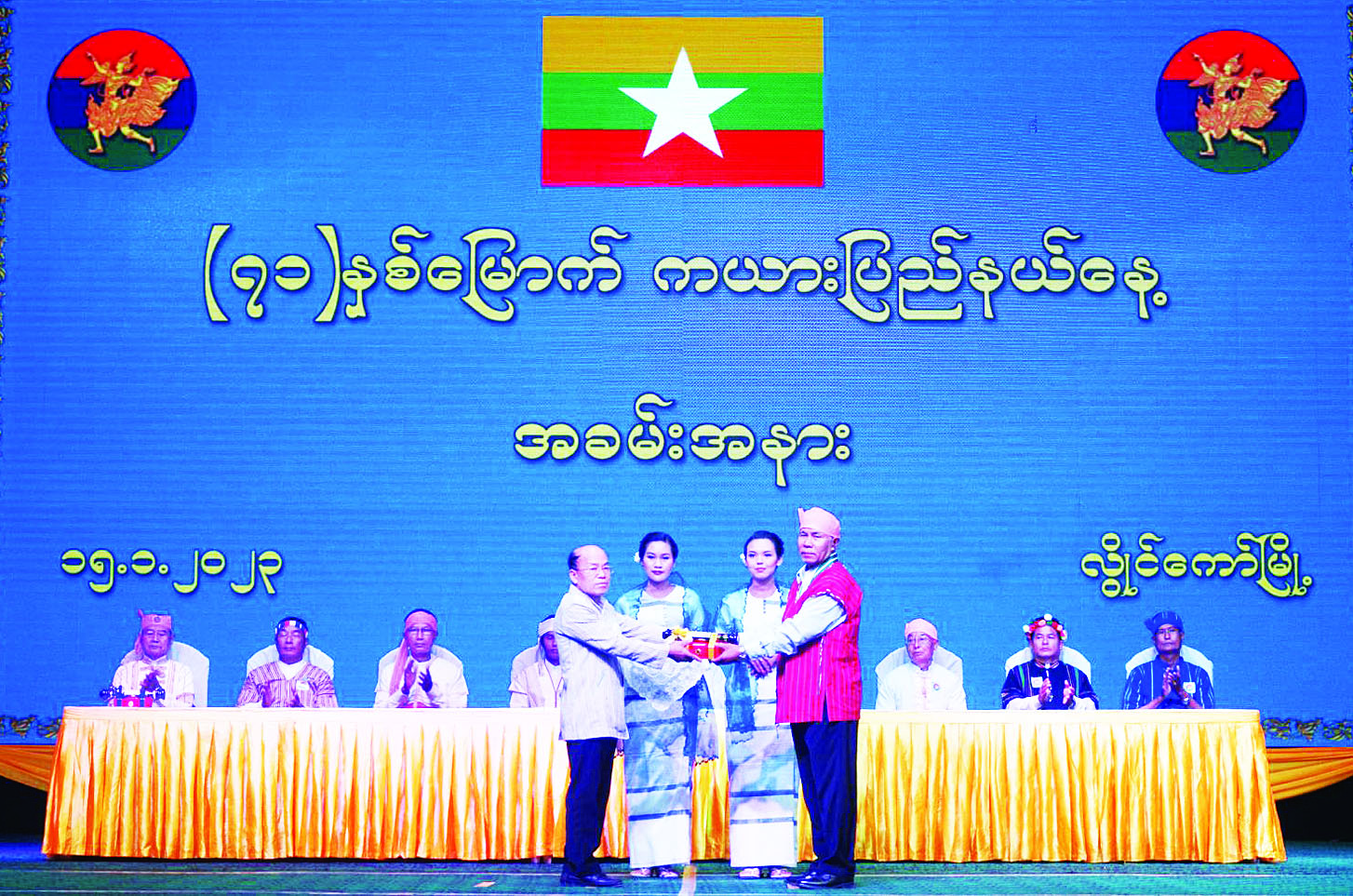 (၇၁)နှစ်မြောက် ကယားပြည်နယ်နေ့အထိမ်းအမှတ် လူထုအခမ်းအနားကို ယနေ့နံနက် ၉ နာရီက ပြည်နယ်ခန်းမ၌ကျင်းပရာ နိုင်ငံတော်စီမံအုပ်ချုပ်ရေးကောင်စီ အဖွဲ့ဝင်စောဒန်နီယယ်၊ ဦးစိုင်းလုံးဆိုင်၊ ဦးရွှေကြိမ်း၊ ပြည်ထောင်စုဝန်ကြီး ဒုတိယဗိုလ်ချုပ်ကြီးထွန်းထွန်းနောင်၊ ဦးစောထွန်းအောင်မြင့်၊ ကယားပြည်နယ်ဝန်ကြီးချုပ် ဦးဇော်မျိုးတင်၊ အရှေ့ပိုင်းတိုင်းစစ်ဌာနချုပ်တိုင်းမှူး ဗိုလ်ချုပ်လှမိုး၊ ဒုတိယဝန်ကြီး ဒေါက်တာအောင်ဇေယျ၊ ဒေါက်တာအေးထွန်းနှင့် တာဝန်ရှိသူများ၊ မြို့မိမြို့ဖများ၊ ပြည်နယ်၊ ခရိုင်နှင့် မြို့နယ်အဆင့် ဌာနဆိုင်ရာများ၊ ဖိတ်ကြားထားသော ဧည့်သည် တော်များ တက်ရောက်ကြသည်။