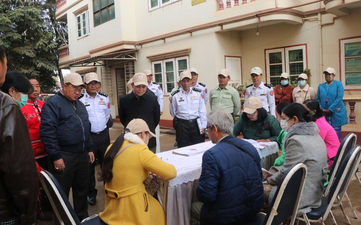 ဦးစွာ ပြည်ထောင်စုဝန်ကြီးနှင့်အဖွဲ့သည် ရှမ်းပြည်နယ်(မြောက်ပိုင်း) လားရှိုးမြို့ အမှတ်(၁၀)ရပ်ကွက် လူမှုဝန်ထမ်းဦးစီးဌာန လူငယ်သင်တန်းကျောင်းရှိ သင်တန်းသား (၆၀)ကို မြေပြင်တစ်အိမ်တက်ဆင်း ကွင်းဆင်းစာရင်းကောက်ယူရေးအဖွဲ့ဝင်များက e-ID Software ဖြင့် ပြုစုထားသည့် အိမ်ထောင်စုလူဦးရေစာရင်းပါ အချက်အလက်များအား လက်ရှိမြေပြင် လူဦးရေစာရင်းအချက်အလက်များနှင့် ကိုက်ညီမှု ရှိ/မရှိ၊ နိုင်ငံသားကတ်ရရှိမှုနှင့် ပြောင်းရွှေ့လာသည့် မူလဒေသအခြေအနေတို့ကို တစ်ဦးချင်း မေးမြန်းတိုက်ဆိုင်ဖြည့်သွင်းဆောင်သွင်းနေမှုကို ကြည့်ရှုအားပေးသည်။