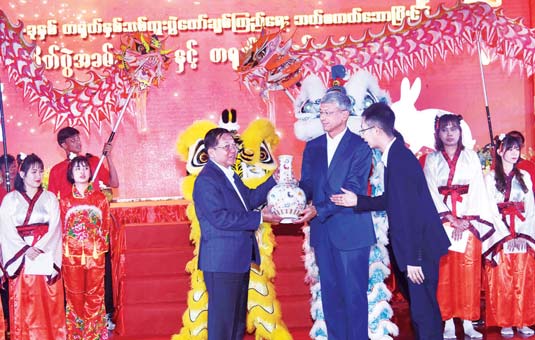 ယင်းနောက် တရုတ်နှစ်သစ်ကူးပွဲတော်ကို စတင်ကျင်းပရာ နိုင်ငံတော်စီမံအုပ်ချုပ်ရေးကောင်စီ ဥက္ကဋ္ဌ နိုင်ငံတော်ဝန်ကြီးချုပ်နှင့်ဇနီး၊ အခမ်းအနား တက်ရောက်လာကြသူများသည် တရုတ်ရိုးရာနဂါး အကအဖွဲ့များမှ ဂါရဝပြုကပြဖျော်ဖြေမှုကို ကြည့်ရှုအားပေးကြပြီး အကအဖွဲ့များနှင့်အတူ စုပေါင်းမှတ်တမ်းတင်ဓာတ်ပုံရိုက်ကူးကြကာ တရုတ်ရိုးရာ ယဉ်ကျေးမှုပြခန်းများနှင့် ဆိုင်ခန်းများကို လှည့်လည်ကြည့်ရှုကြသည်။ ၎င်းနောက် တရုတ်နှစ်သစ်ကူး ပွဲတော်အခမ်းအနား အထိမ်းအမှတ် မီးရှုးမီးပန်း ပစ်ဖောက်မှုများကို ကြည့်ရှုအားပေးကြသည်။