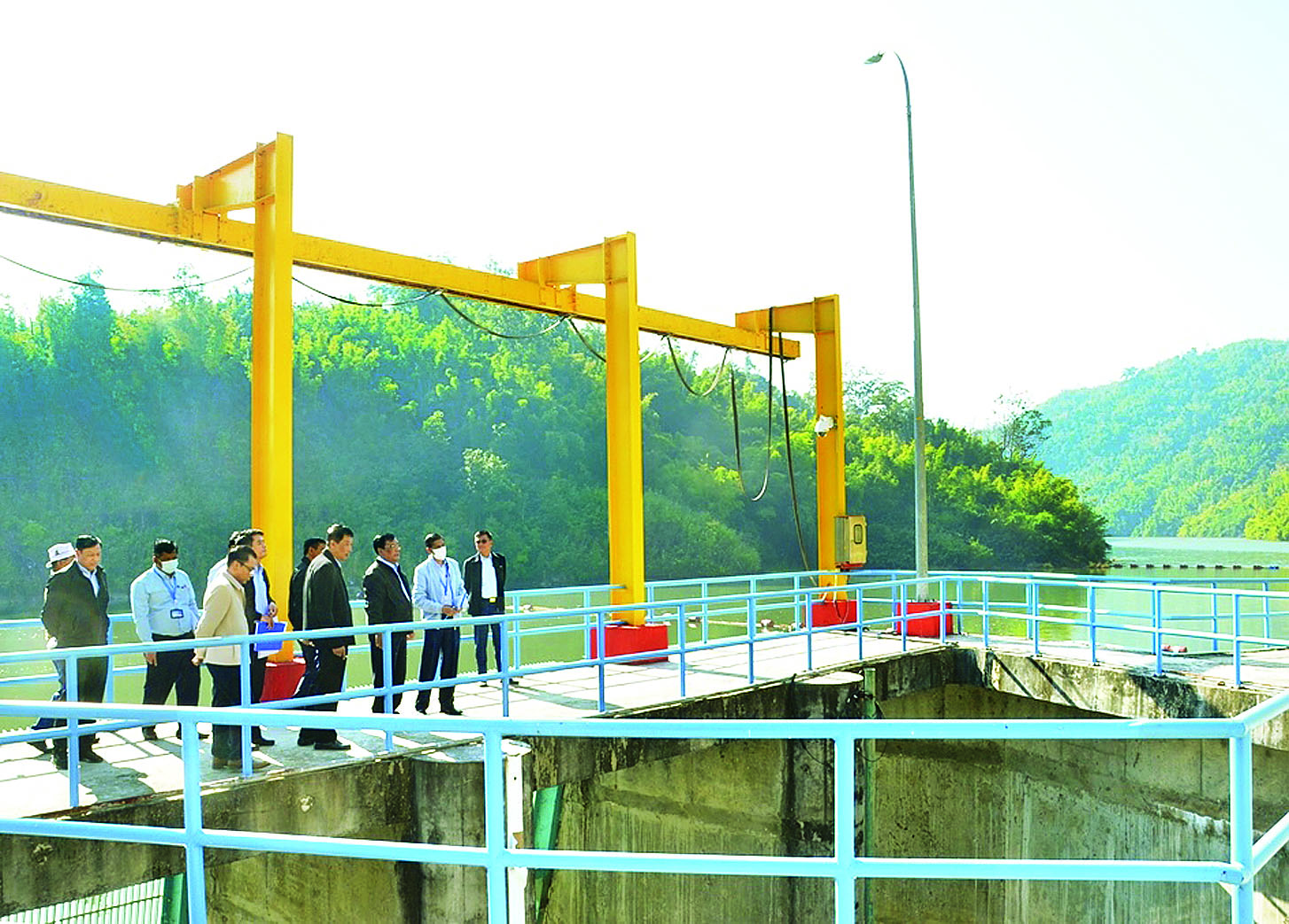 ဆက်လက်၍ ပြည်ထောင်စုဝန်ကြီးနှင့်အဖွဲ့သည် ရေထိန်းကန်သို့ရောက်ရှိပြီး ရေထိန်းကန် အတွင်း ရေသိုလှောင်ထားမှုအခြေအနေ၊ ဓာတ်အားပေးစက်ရုံသို့ ဖိအားမြင့်သံမဏိပိုက်လိုင်းဖြင့် ရေပို့လွှတ်မှုနှင့် ရေအားအဆောက်အအုံများ၏ ကြံ့ခိုင်မှုတို့ကို ကြည့်ရှုစစ်ဆေးရာ တာဝန်ရှိသူများက ရှင်းလင်းတင်ပြသည်။ အဆိုပါရေထိန်းကန်သည် ရေဂါလန် ပေါင်း ၂၆ သိန်းခန့် သိုလှောင်နိုင်ပြီး အချင်း ၁၃ ပေ၊ အလျား ၈၇၆ ပေရှိ ဖိအားမြင့်သံမဏိပိုက်လိုင်းဖြင့် ဓာတ်အားပေးစက်ရုံသို့ ပို့လွှတ်ပေးလျက်ရှိသည်။