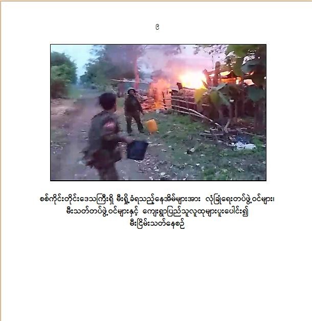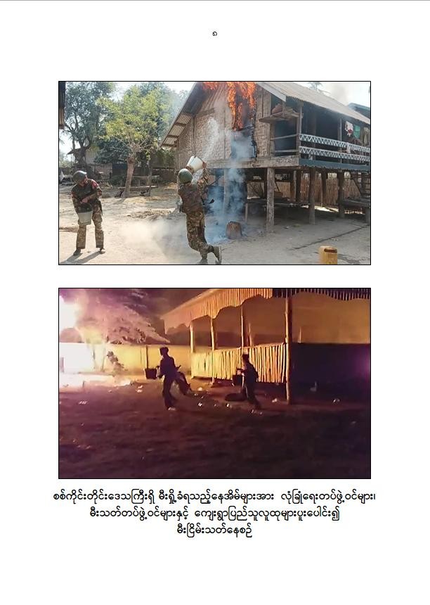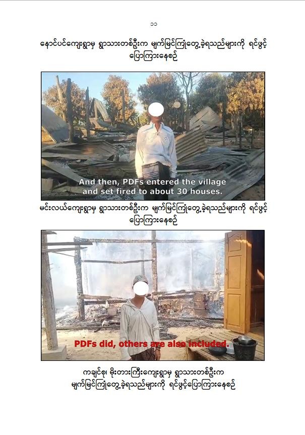 အထူးသဖြင့် ရိုးသားသည့် ဒေသခံပြည်သူများအနေဖြင့် နိုင်ငံတော်နှင့်တပ်မတော်အပေါ် အထင်အမြင်လွဲမှားကာ နာကျည်းစိတ်များဖြစ်ပေါ်လာစေရေး၊ ၎င်းတို့ကို ထောက်ခံအားပေးမှုရရှိလာစေရေး လိမ်ညာလုပ်ကြံဝါဒဖြန့်မှုများ ပြုလုပ်နိုင်ရန်အတွက် အပြစ်မဲ့ပြည်သူများ၏ အိုး၊ အိမ်၊ စည်းစိမ်ပစ္စည်းဥစ္စာများကို ရက်စက်စွာဖျက်ဆီးခဲ့သည့် လုပ်ဆောင်ချက်များဖြစ်ကြောင်း တွေ့ရှိရပါသည်။