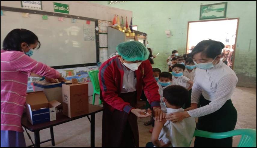ထို့အတူ ကျောင်းသား၊ ကျောင်းသူများကိုလည်း ကိုဗစ်-၁၉ ရောဂါကာကွယ်ဆေးများထိုးနှံပေးလျက်ရှိရာ ယနေ့တွင် ဧရာဝတီတိုင်းဒေသကြီးအတွင်းရှိ မြို့နယ်(၂၆)မြို့နယ်တို့၌ ကျောင်းသား၊ ကျောင်းသူ ၂၀၁၉ ဦးကို တပ်မတော်မှဆေးအဖွဲ့များက ပြည်သူ့ဆေးရုံများမှ ဆရာဝန်များ၊ သက်ဆိုင်ရာကျန်းမာရေးဝန်ထမ်းများ၊ စေတနာ့ဝန်ထမ်းများနှင့်ပူးပေါင်း၍ ကိုဗစ်-၁၉ ရောဂါကာကွယ်ဆေးထိုးနှံပေးခြင်းများ ဆောင်ရွက်ပေးခဲ့ကြောင်း သတင်းရရှိသည်။