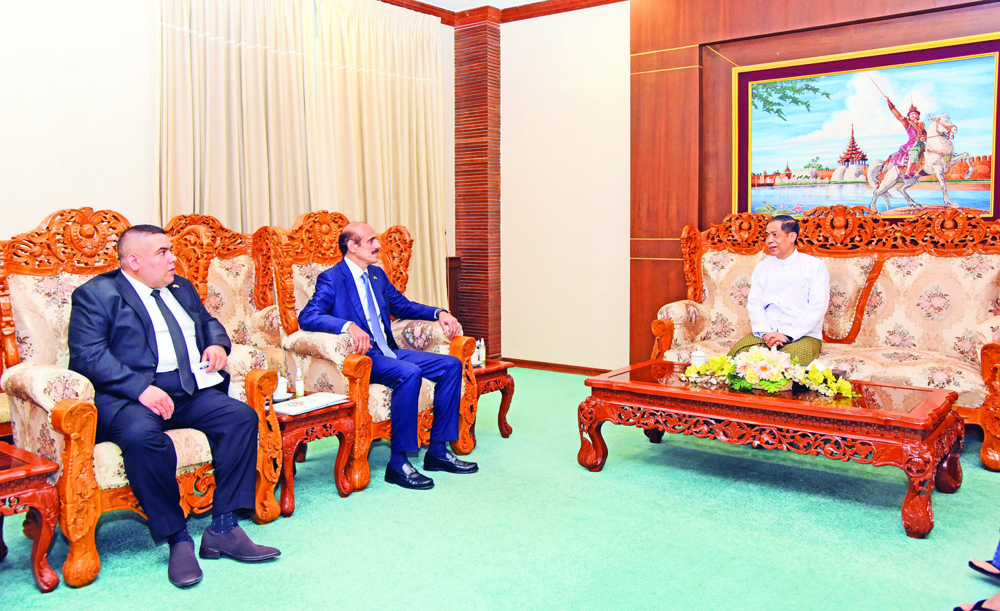 တွေ့ဆုံစဉ် ပြည်ထောင်စုဝန်ကြီးက သံအမတ်ကြီးကို ပြည်ထောင်စုသမ္မတမြန်မာနိုင်ငံတော်ဆိုင်ရာ အထူးအာဏာကုန်လွှဲအပ်ခြင်းခံရသော ကူဝိတ်နိုင်ငံသံအမတ်ကြီးအဖြစ် ခန့်အပ်တာဝန်ပေးခြင်းခံရသည့်အတွက် ဂုဏ်ယူဝမ်းမြောက်ကြောင်း ပြောကြားခဲ့ပြီး မြန်မာနိုင်ငံနှင့် ကူဝိတ်နိုင်ငံတို့အကြား တည်ရှိပြီးဖြစ်သည့် ပူးပေါင်းဆောင်ရွက်မှု၊ ကုန်သွယ်မှု၊ ရင်းနှီးမြှုပ်နှံမှုနှင့် စွမ်းအင်စသည့် ကဏ္ဍတို့တွင် အကျိုးတူဆောင်ရွက်မှုတိုးမြှင့်ရေးနှင့် ဒေသတွင်းနှင့် နိုင်ငံတကာမျက်နှာစာများတွင် အပြန်အလှန်နားလည်မှု၊ ထောက်ခံမှုများဖြင့် ဆက်လက်ပူးပေါင်းဆောင်ရွက်သွားရေး စသည့်ကိစ္စရပ်များနှင့်စပ်လျဉ်း၍ ရင်းနှီးပွင့်လင်းစွာ အမြင်ချင်းဖလှယ်ဆွေးနွေးခဲ့ကြကြောင်း သိရသည်။
