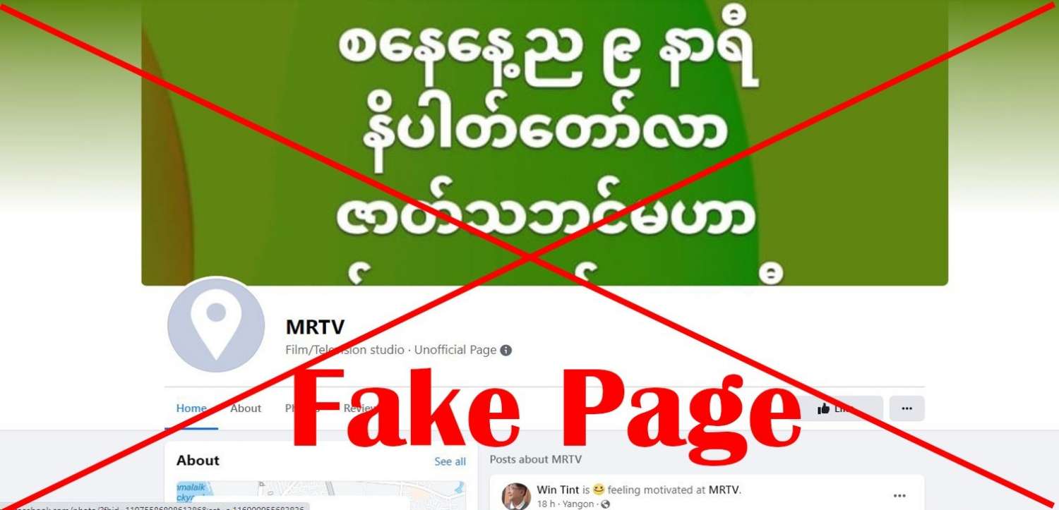 အဆိုပါ Page များတွင် ဆူပူအကြမ်းဖက်မှုနှင့် ပဋိပက္ခသတင်းများ ဦးစားပေးလွှင့်တင်နေပြီး ဖျော်ဖြေရေး၊ ပစ္စည်းရောင်းချခြင်းနှင့် ဝန်ဆောင်မှုလုပ်ငန်းများ ထည့်သွင်းထုတ်လွှင့်လျက်ရှိရာ MRTV အမည်နှင့် Logo အား ခွင့်ပြုချက်မရှိဘဲ ရယူသုံးစွဲနေသည့် Page အတုများဖြစ်ကြောင်း ပြန်ကြားရေးဝန်ကြီးဌာန မြန်မာ့အသံနှင့်ရုပ်မြင်သံကြားမှ သတင်းထုတ်ပြန်ထားသည်။
