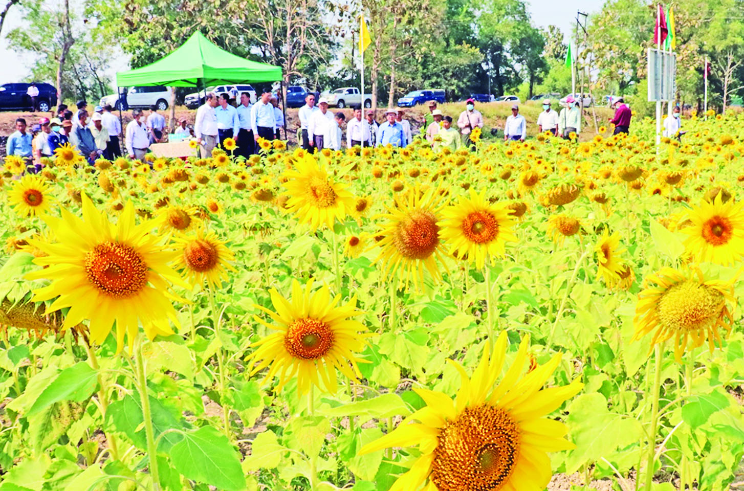 ရှင်းလင်းတင်ပြချက်များနှင့် စပ်လျဉ်း၍ ဒုတိယဝန်ကြီးက သဘာဝမြေဩဇာနှင့် ဓာတ်မြေ ဩဇာကို အချိုးကျပေါင်းစပ် အသုံးပြုရန် လိုအပ်ချက်များ၊ နေကြာအထွက်နှုန်း သေချာစေ ရေးသွင်းအားစုနှင့်စိုက်ပျိုးရေကို အချိန်ကိုက်ထည့်သွင်းရန် လိုအပ်ချက်များကို ဆွေးနွေးမှာကြားပြီး တောင်သူ ဦးခင်မောင်လွင်၏ Super Summer.66 စပ်မျိုး နေကြာစိုက်ခင်း ဖြစ်ထွန်း အောင်မြင်နေမှုများကို ကြည့်ရှုအားပေးသည်။