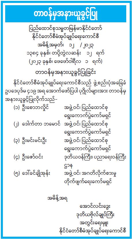 ဝန်ကြီးဌာန ကြေညာချက်များ
