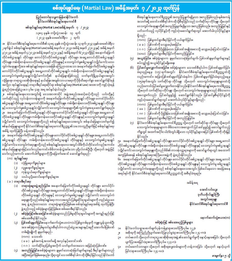 စစ်အုပ်ချုပ်ရေး (Martial Law) အမိန့်အမှတ်၊ ၇ /၂၀၂၃ ထုတ်ပြန်