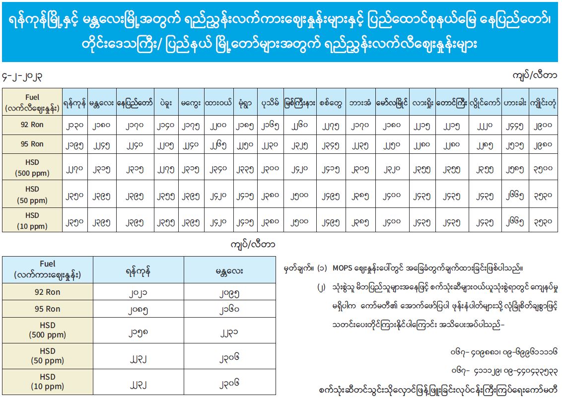 ရန်ကုန်မြို့နှင့် မန္တလေးမြို့အတွက် ရည်ညွှန်းလက်ကားဈေးနှုန်းများနှင့် ပြည်ထောင်စုနယ်မြေ နေပြည်တော်၊ တိုင်းဒေသကြီး/ပြည်နယ် မြို့တော်များအတွက် ရည်ညွှန်းလက်လီဈေးနှုန်းများ 02/04/2023