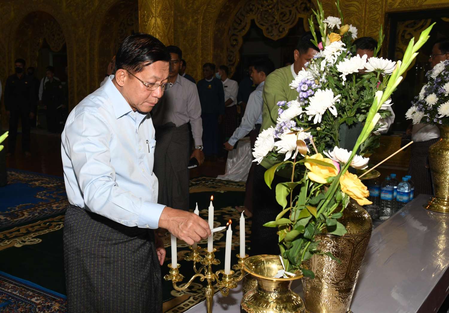 နိုင်ငံတော်စီမံအုပ်ချုပ်ရေးကောင်စီဥက္ကဋ္ဌ နိုင်ငံတော်ဝန်ကြီးချုပ် ဗိုလ်ချုပ်မှူးကြီးမင်းအောင်လှိုင်သည် ယနေ့ညပိုင်းတွင် ခရီးစဉ်တွင်လိုက်ပါလာသည့် အဖွဲ့ဝင်များ၊ ဧရာဝတီတိုင်းဒေသကြီးဝန်ကြီးချုပ် ဦးတင်မောင်ဝင်း၊ အနောက်တောင်တိုင်း စစ်ဌာနချုပ်တိုင်းမှူး ဗိုလ်မှူးချုပ်ကြည်ခိုင်နှင့် တာဝန်ရှိသူများလိုက်ပါ၍ ပုသိမ်မြို့ကျက်သရေဆောင် ရွှေမုဋ္ဌောမဟာစေတီတော်မြတ်ကြီးသို့ သွားရောက်ဖူးမြော် ကြည်ညိုသည်။