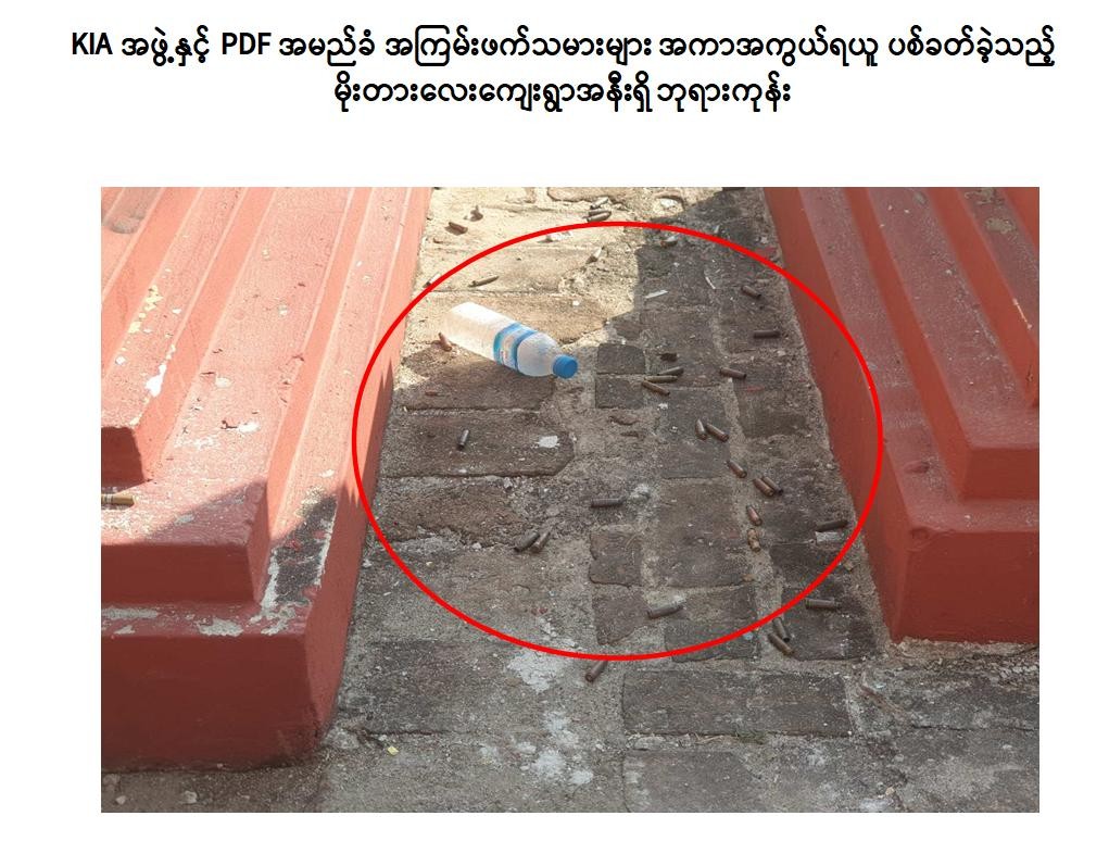 တိုက်ပွဲများပြီးဆုံးပြီးနောက် ကျေးရွာအတွင်း လှည့်လည်စစ်ဆေးခဲ့ရာ KIA အဖွဲ့နှင့် PDF အမည်ခံအကြမ်းဖက်သမားများသည် စာသင်ကျောင်းပရဝုဏ်အတွင်း သဲအိတ်ဘန်ကာများ၊ မြေအောက် အပစ်ကတုတ်ကျင်းများ အခိုင်အမာတည်ဆောက်ခုခံခြင်း၊ စာသင်ခန်းများအတွင်း ပညာသင်ကြားနေသည့်ကလေးများ အသုံးပြုသည့်စာရေးခုံများကို အသုံးပြု၍ သဲအိတ်များဖြင့် ဘန်ကာသဖွယ် အခိုင်အမာ စခန်းတည်ဆောက်ထားခြင်းအပြင် အဓိကခုခံခဲ့သည့် ရွာဦးစေတီတော်ကုန်း တစ်ဝိုက်၌လည်း စေတီပုထိုးများ အကာအကွယ်ဖြင့်လည်းကောင်း၊ သံဃာနှင့်ကပ္ပိယ အိပ်ဆောင်များ၌လည်းကောင်း၊ သဲအိတ်များစီ၍ခုခံခဲ့သည့် အနေအထားတို့ကို တွေ့ရှိခဲ့သဖြင့် အကြမ်းဖက်သမားများ အသုံးပြုခဲ့သည့် ကျောင်းဝန်းအတွင်းနှင့် စာသင်ခန်းများ အတွင်းရှိ ဘန်ကာများနှင့် စေတီကုန်းတစ်ဝိုက်အား လုံခြုံရေးတပ်ဖွဲ့ဝင်များက ကျေးရွာသူ၊ ကျေးရွာသားများနှင့်အတူ ဖယ်ရှားရှင်းလင်းပေးခြင်း၊ စာသင်ကျောင်းပျက်စီးမှုများအား ပြန်လည်ပြုပြင်ပေးခြင်း၊ စာသင်ကျောင်းနှင့် ကျေးရွာတစ်ဝိုက်တို့အား မိုင်းရှင်းလင်းပေးခြင်းများ ဆောင်ရွက်ပေးခဲ့ပြီး စေတီပုထိုးနှင့်သံဃာအိပ်ဆောင်များ ပြန်လည်ပြုပြင်ပေးခြင်းများကို ကျေးရွာသူ၊ ကျေးရွာသားများနှင့်အတူ ဆောင်ရွက်ပေးခဲ့ကာ နယ်မြေဒေသ တည်ငြိမ်အေးချမ်းရေးနှင့်ပတ်သက်၍ လိုအပ်သည်များ ရှင်းလင်းပြောကြားခဲ့သည်။ အဆိုပါ အခိုင်အမာစခန်းများ ပြုလုပ်မှုအတွက် အကြမ်းဖက်အုပ်စုတို့က ရွာသူ/သားများအား အဓမ္မနည်းဖြင့် ခြိမ်းခြောက် ဆောင်ရွက်စေခဲ့ကြောင်း ကိုလည်း သိရှိရသည်။