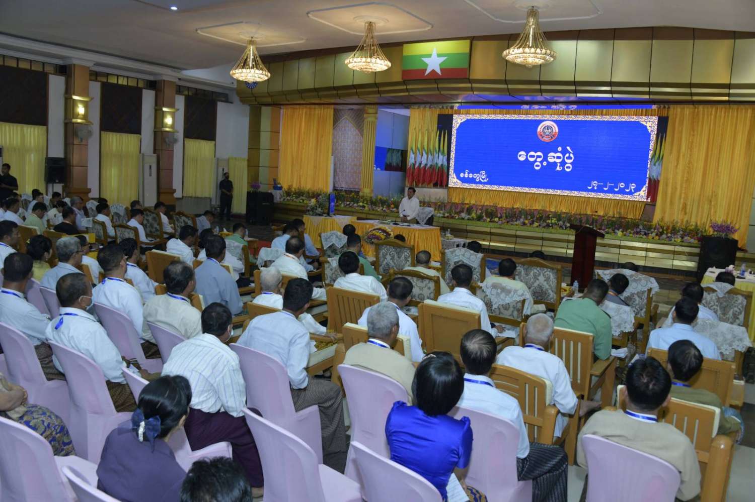 နိုင်ငံတော်စီမံအုပ်ချုပ်ရေးကောင်စီဥက္ကဋ္ဌ နိုင်ငံတော်ဝန်ကြီးချုပ် ဗိုလ်ချုပ်မှူးကြီးမင်းအောင်လှိုင်သည် ယနေ့နံနက်ပိုင်းတွင် ရခိုင်ပြည်နယ်အတွင်းရှိ အသေးစား၊ အငယ်စားနှင့် အလတ်စား စီးပွားရေး(MSME) လုပ်ငန်းရှင်များအား စစ်တွေမြို့၊ ဦးဥတ္တမခန်းမ၌တွေ့ဆုံ၍ ဒေသဖွံ့ဖြိုးတိုးတက်ရေးဆိုင်ရာများနှင့် စီးပွားရေးလုပ်ငန်းဖွံ့ဖြိုးတိုးတက်ရေးဆိုင်ရာများကို ဆွေးနွေးပြောကြားသည်။