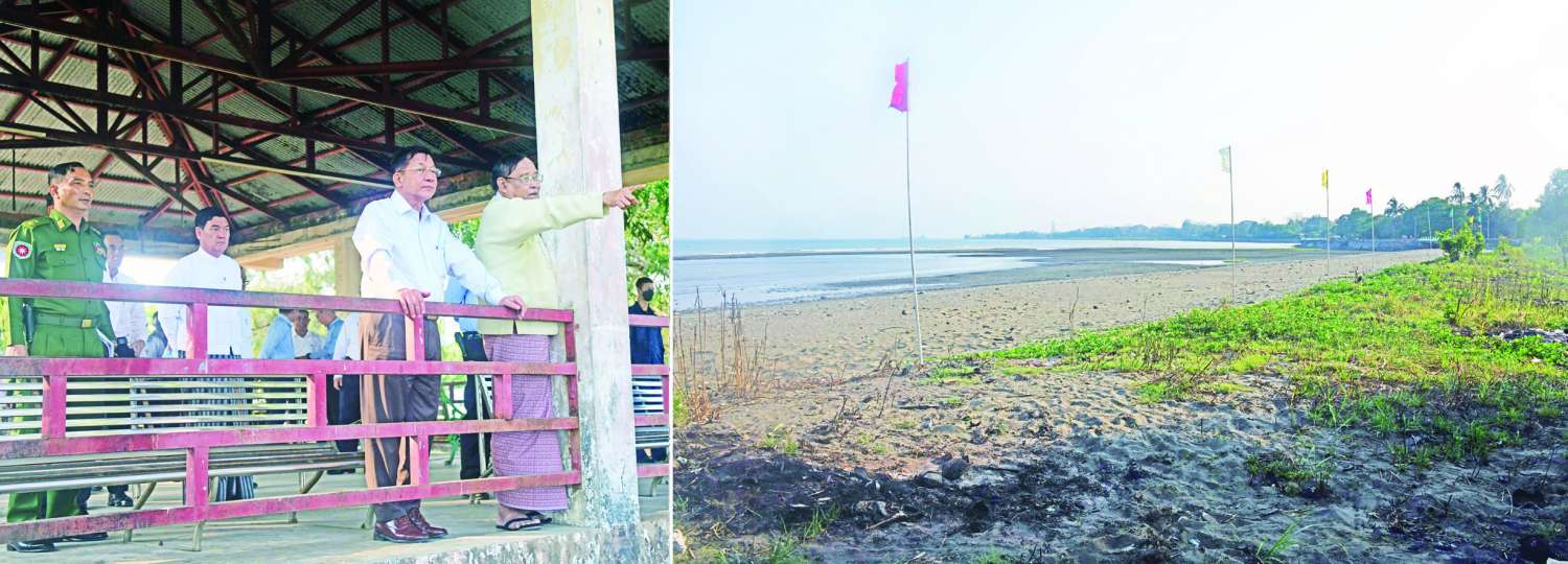 ထို့နောက် နိုင်ငံတော်စီမံအုပ်ချုပ်ရေးကောင်စီဥက္ကဋ္ဌ နိုင်ငံတော်ဝန်ကြီးချုပ်နှင့် အဖွဲ့ဝင်များသည် စစ်တွေမြို့ ရှုခင်းသာလမ်းတစ်လျှောက်တွင် ပြည်သူများ အနားယူအပန်းဖြေနိုင်ရန်အတွက် ကမ်းခြေတစ်လျှောက် သဲဖို့ခြင်းလုပ်ငန်းများဆောင်ရွက်ရန် စီမံဆောင်ရွက်မည့်အခြေအနေများကို သွားရောက်ကြည့်ရှုစစ်ဆေးပြီး တာဝန်ရှိသူများ၏ တင်ပြချက်များအပေါ် လိုအပ်သည်များ လမ်းညွှန်မှာကြားခဲ့ကြောင်း သတင်းရရှိသည်။