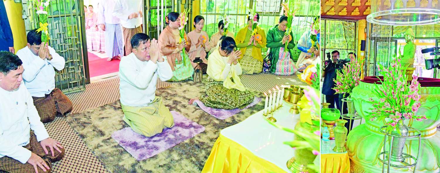ဦးစွာ နိုင်ငံတော်စီမံအုပ်ချုပ်ရေးကောင်စီဥက္ကဋ္ဌ နိုင်ငံတော်ဝန်ကြီးချုပ်နှင့် အဖွဲ့ဝင်များက စေတီတော်လိုဏ်အတွင်းရှိ ဗုဒ္ဓရုပ်ပွားတော်မြတ်အား ဖူးမြော်ကြည်ညို၍ မြသပိတ်ဆွမ်းတော်နှင့် ပန်း၊ ရေချမ်း၊ ဆီမီး တို့ကို ဆက်ကပ်လှူဒါန်းသည်။