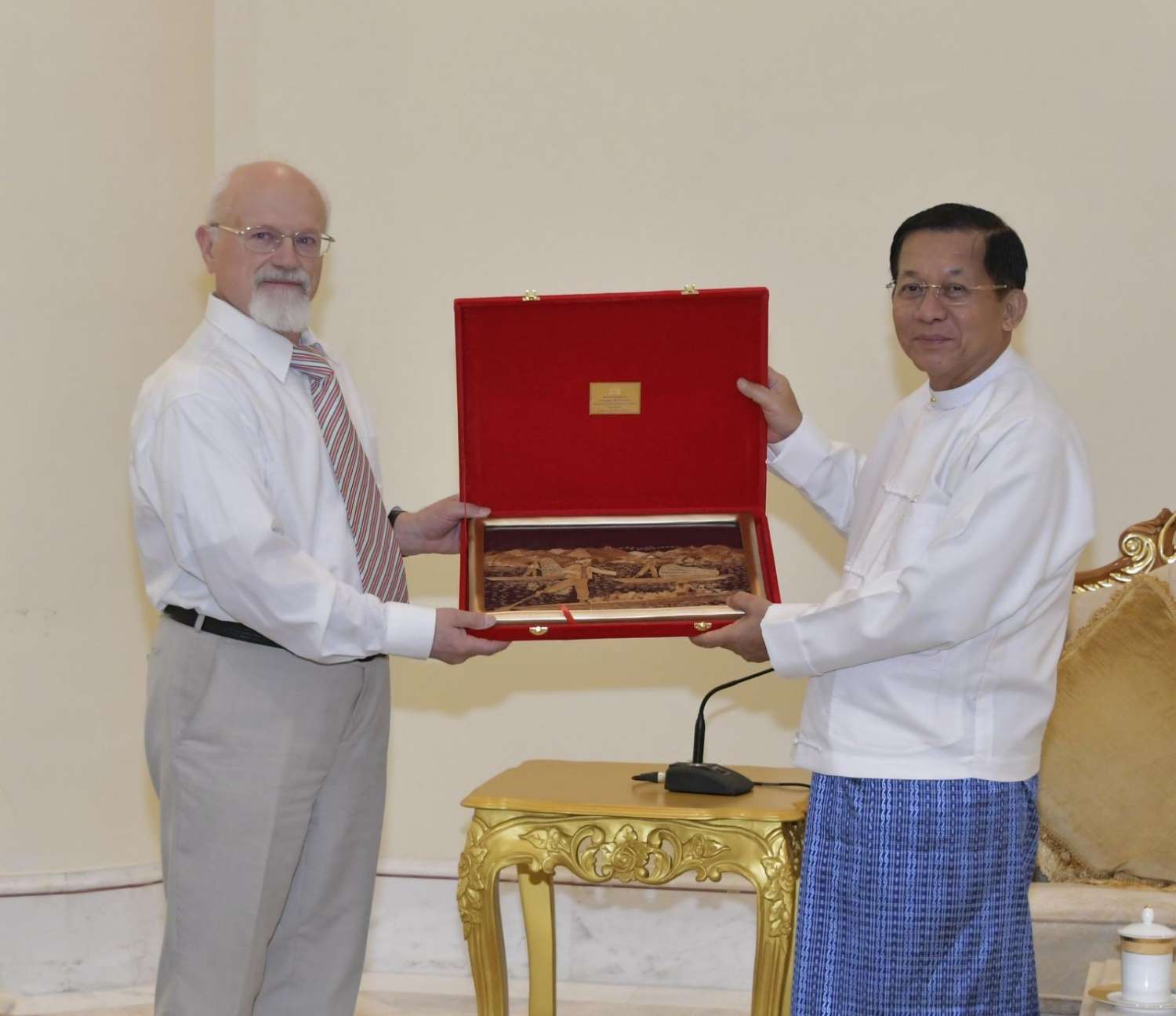 တွေ့ဆုံပွဲအပြီးတွင် နိုင်ငံတော်စီမံအုပ်ချုပ်ရေးကောင်စီဥက္ကဋ္ဌ နိုင်ငံတော်ဝန်ကြီးချုပ်နှင့် ရုရှား-မြန်မာချစ်ကြည်ရေးနှင့် ပူးပေါင်းဆောင်ရွက်ရေးအသင်းဒုတိယဥက္ကဋ္ဌတို့သည် အမှတ်တရလက်ဆောင်ပစ္စည်းများ အပြန်အလှန်ပေးအပ်ကြပြီး မှတ်တမ်းတင်ဓာတ်ပုံရိုက်ခဲ့ကြသည်။