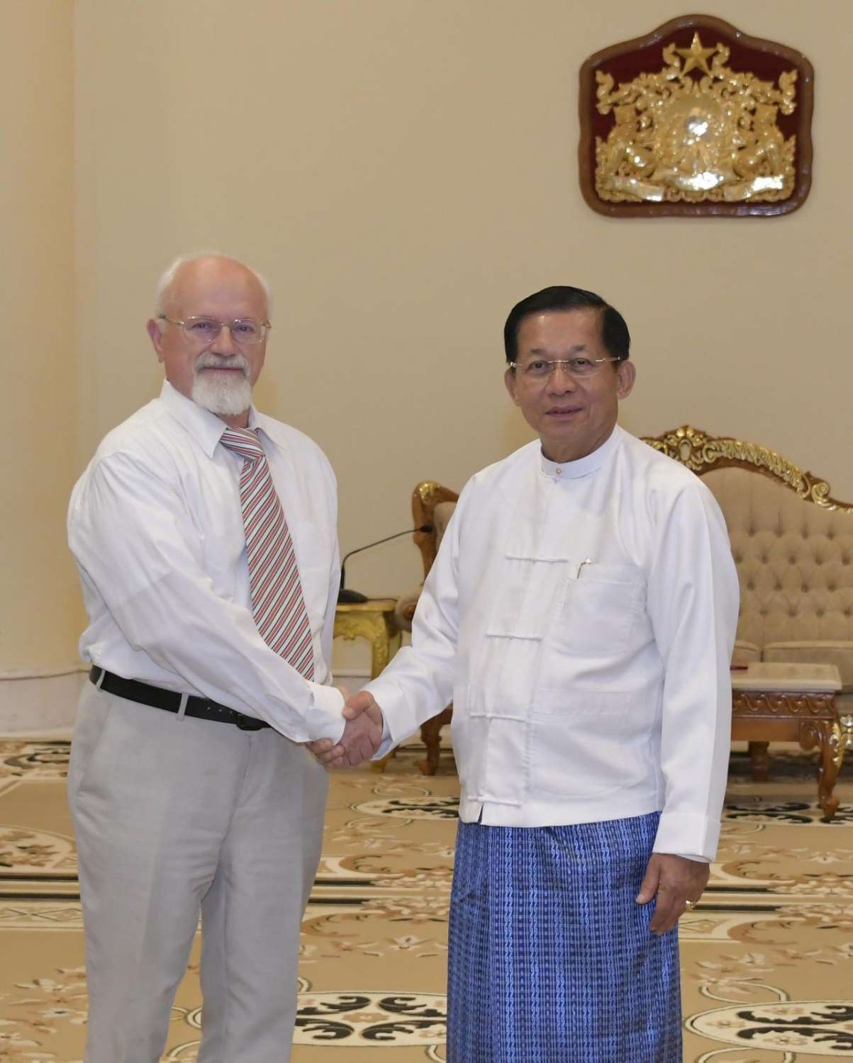 နိုင်ငံတော်စီမံအုပ်ချုပ်ရေးကောင်စီဥက္ကဋ္ဌ နိုင်ငံတော်ဝန်ကြီးချုပ် ဗိုလ်ချုပ်မှူးကြီး မင်းအောင်လှိုင်ထံ ရုရှား-မြန်မာ ချစ်ကြည်ရေးနှင့် ပူးပေါင်းဆောင်ရွက်ရေးအသင်း ဒုတိယဥက္ကဋ္ဌ Mr. Anatoly Bulochnikov ဦးဆောင်သော ကိုယ်စားလှယ်အဖွဲ့က လာရောက်ဂါရဝပြုတွေ့ဆုံ