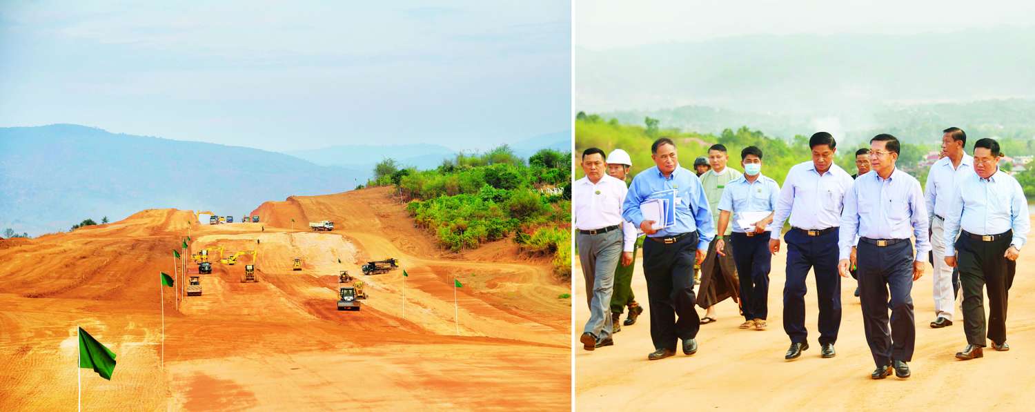 နိုင်ငံတော်စီမံအုပ်ချုပ်ရေးကောင်စီဥက္ကဋ္ဌ နိုင်ငံတော်ဝန်ကြီးချုပ် ဗိုလ်ချုပ်မှူးကြီး မင်းအောင်လှိုင် ကျိုင်းတုံလေယာဉ်ပြေးလမ်းအဆင့်မြှင့်တင်နိုင်မည့် အခြေအနေများနှင့် ကျိုင်းတုံဟော်နန်း ပုံစံတူတည်ဆောက်နေမှု အခြေအနေများအား သွားရောက်ကြည့်ရှုစစ်ဆေး