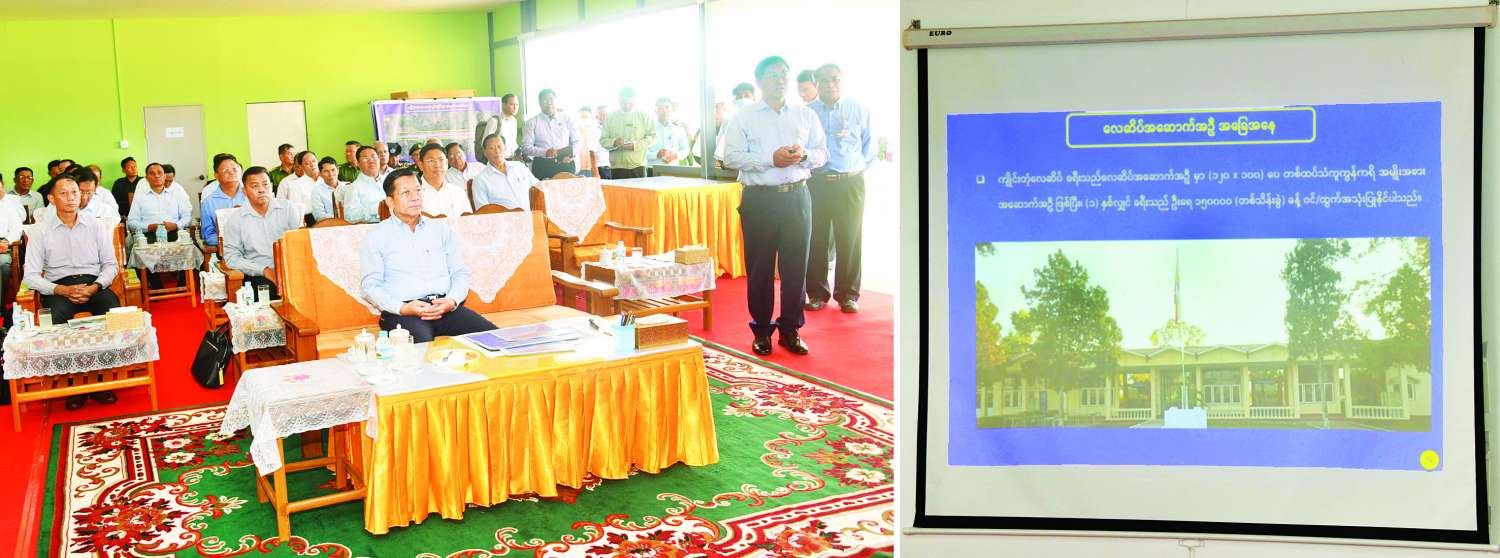 ထို့နောက် လေဆိပ်ရှင်းလင်းဆောင်တွင် ဒုတိယဝန်ကြီးချုပ်နှင့် ပို့ဆောင်ရေးနှင့် ဆက်သွယ်ရေးဝန်ကြီးဌာန ပြည်ထောင်စုဝန်ကြီး ဗိုလ်ချုပ်ကြီး တင်အောင်စန်း၊ စစ်ထောက်ချုပ် ဒုတိယဗိုလ်ချုပ်ကြီး ကျော်စွာလင်းနှင့် စစ်အင်ဂျင်နီယာညွှန်ကြားရေးမှူးရုံး ညွှန်ကြားရေးမှူး ဗိုလ်မှူးချုပ် ဇော်နိုင်ဦးတို့က ကျိုင်းတုံလေဆိပ် သမိုင်းအကျဉ်းနှင့် လေဆိပ်ဆိုင်ရာများ၊ လေယာဉ်ပြေးလမ်းနှင့် လေဆိပ်အဆင့်မြှင့်တင်နိုင်မည့် အခြေအနေများ၊ ဆက်လက်ဆောင်ရွက်သွားမည့် လျာထားစီမံကိန်းလုပ်ငန်းဆိုင်ရာများကို ရှင်းလင်းတင်ပြကြသည်။