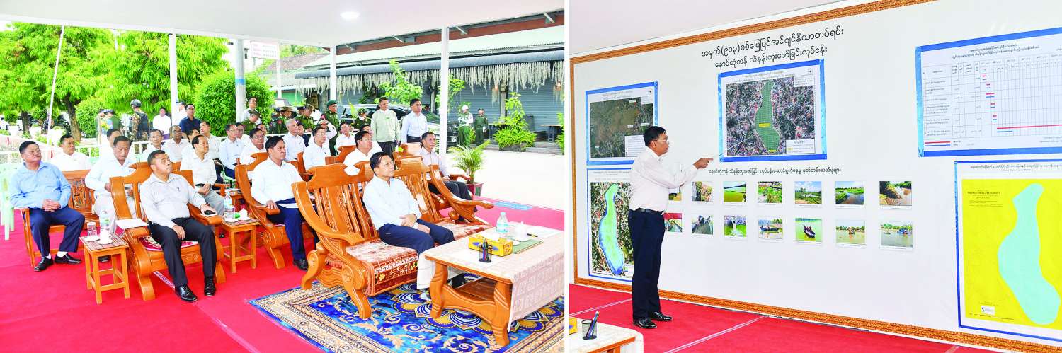 ထို့နောက် နိုင်ငံတော်စီမံအုပ်ချုပ်ရေးကောင်စီဥက္ကဋ္ဌ နိုင်ငံတော်ဝန်ကြီးချုပ်သည် နောင်တုံကန် ပြုပြင်ထိန်းသိမ်းထားရှိမှုအခြေအနေများကို သွားရောက်ကြည့်ရှုစစ်ဆေးရာ စစ်အင်ဂျင်နီယာညွှန်ကြားရေးမှူးရုံး ညွှန်ကြားရေးမှူးနှင့် နယ်မြေခံ စစ်မြေပြင်အင်ဂျင်နီယာတပ်မှတာဝန်ရှိသူတစ်ဦးက နောင်တုံကန် ရေဝင်၊ ရေထွက် အခြေအနေများနှင့် ကန်ရေကို ထိခိုက်မှုမရှိစေဘဲ သဲနုန်းတူးဖော်ရေးလုပ်ငန်းကို နုန်းများကို အရည်ပျော်စေ၍ စုပ်ထုတ်ဆောင်ရွက်မှုအခြေအနေများ၊ ထို့ကြောင့် သဘာဝပတ်ဝန်းကျင်ထိခိုက်မှု အနည်းဆုံးဖြစ်အောင် ဆောင်ရွက်နိုင်မှုအခြေအနေများ၊ ရေအောက်မြေ မျက်နှာသွင်ပြင်တိုင်းတာခြင်းနှင့် ပုံထုတ်ခြင်းလုပ်ငန်း (Sonic water Level meter) များကို ဆောင်ရွက်ပြီး သဲနုန်းတူးဖော်ခြင်းလုပ်ငန်းများကို စနစ်တကျဆောင်ရွက်လျက်ရှိမှုနှင့် ကန်ရေသန့်ရှင်းမှုရှိစေရေး ခေတ်မီစက်ကိရိယာ၊ ယန္တရားများကို အသုံးပြုဆောင်ရွက်လျက်ရှိသည့် အခြေအနေများကို တင်ပြသည်။